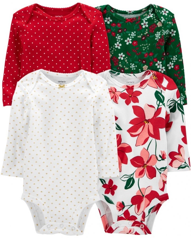 CARTER'S Body dl. rukáv Red Green dívka 4ks