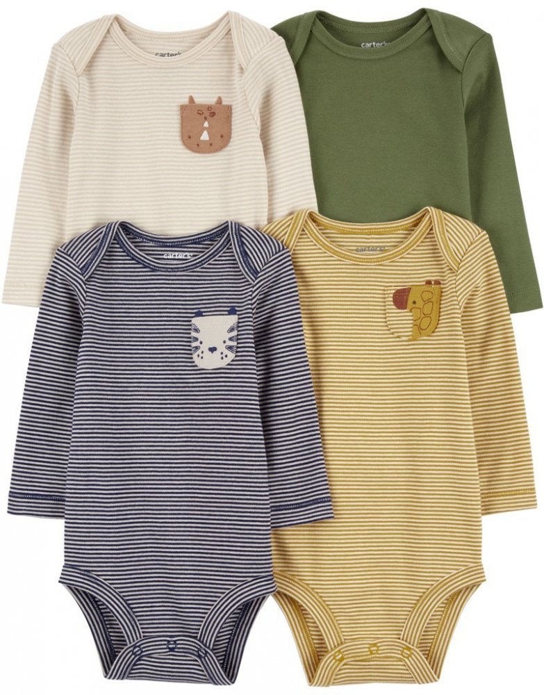 CARTER'S Body dlouhý rukáv Navy Olive Animal kluk 4ks