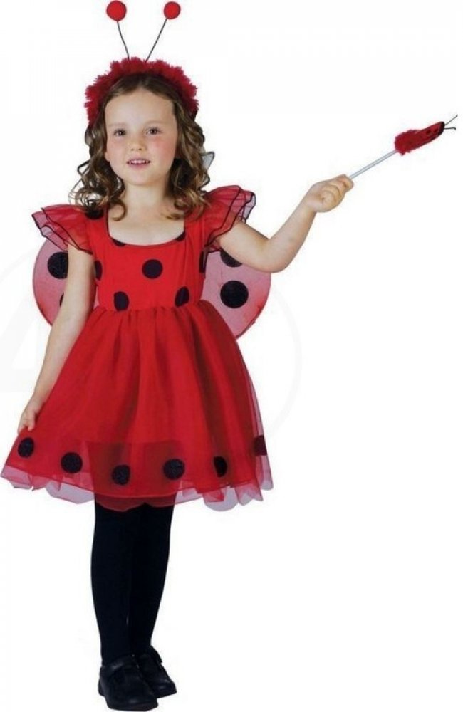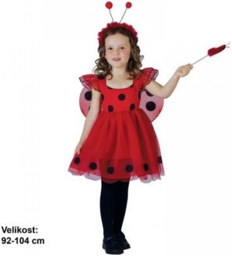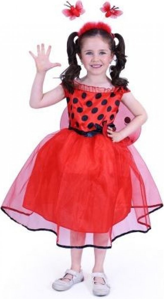 Designový dětský červený holčičí kostým s puntíky, na karneval, z kvalitního a příjemného materiálu v provedení Beruška.