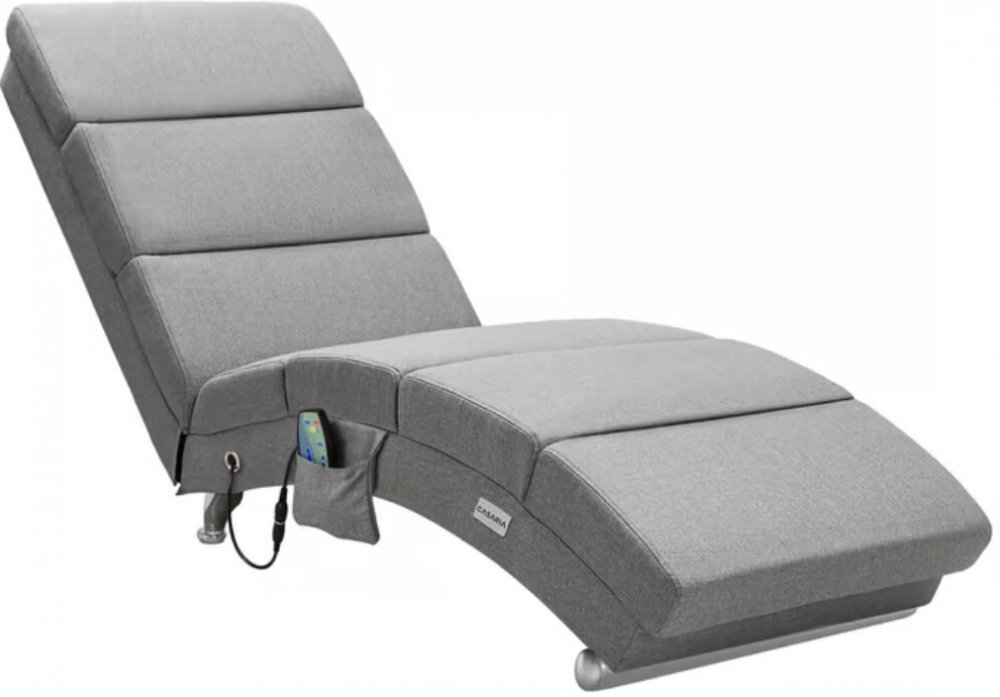 Relaxujte a užívejte si pohodu s relaxační lehátkem London s masážní a vyhřívací funkcí – wellness přímo u vás doma! S 8 masážními body a 5 různými masážními režimy, které lze nastavit ve 2 intenzitách a s vyhřívací funkcí vás čeká příjemná masáž celého těla bez omezení. Výhody produktu: včetně dálkového ovládání pro jednoduché ovládání ergonomicky tvarovaná plocha k ležení extra vysoké opěradlo tlusté, měkké čalounění stabilní kovové nohy s chromovanou úpravou odolný a snadno udržovatelný potah boční kapsa na uložení dálkového ovladače vysoká nosnost 180kg kvalitní zpracování moderní, nadčasový design jednoduchá a rychlá montáž Masážní a vyhřívací funkce: Vyhřívací funkce pro chladné období 8 masážních bodů: 2 na ramena, boky, stehna a lýtka, individuálně nastavitelné 5 masážních režimů: pulzující, tlaková, vlnivá, automatická a normální 2 intenzity: vysoká & nízká Funkce časovače: 15, 30 nebo 60 minut Technické údaje: Rozměry (DxŠxV): 186×55×89cm Nosnost: max. 180kg Materiál čalounění: pěna Materiál potahu: 100% polyester Materiál rámu: ocel, nohy chromované Výkon: 14,4W Barva: látka šedá Obsah balení: 1× čalouněné lehátko London s masážní a vyhřívací funkcí 1× dálkové ovládání a návod k použití