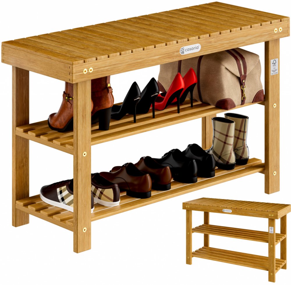 Stojan na boty v koloniálním stylu vyrobený z robustního akáciového tvrdého dřeva slouží i jako lavička. To vám umožní pohodlně sedět při obouvání a zouvání bot. Pevné police poskytují dostatek prostoru a pořádku. Lavičku lze využít také jako praktickou polici.