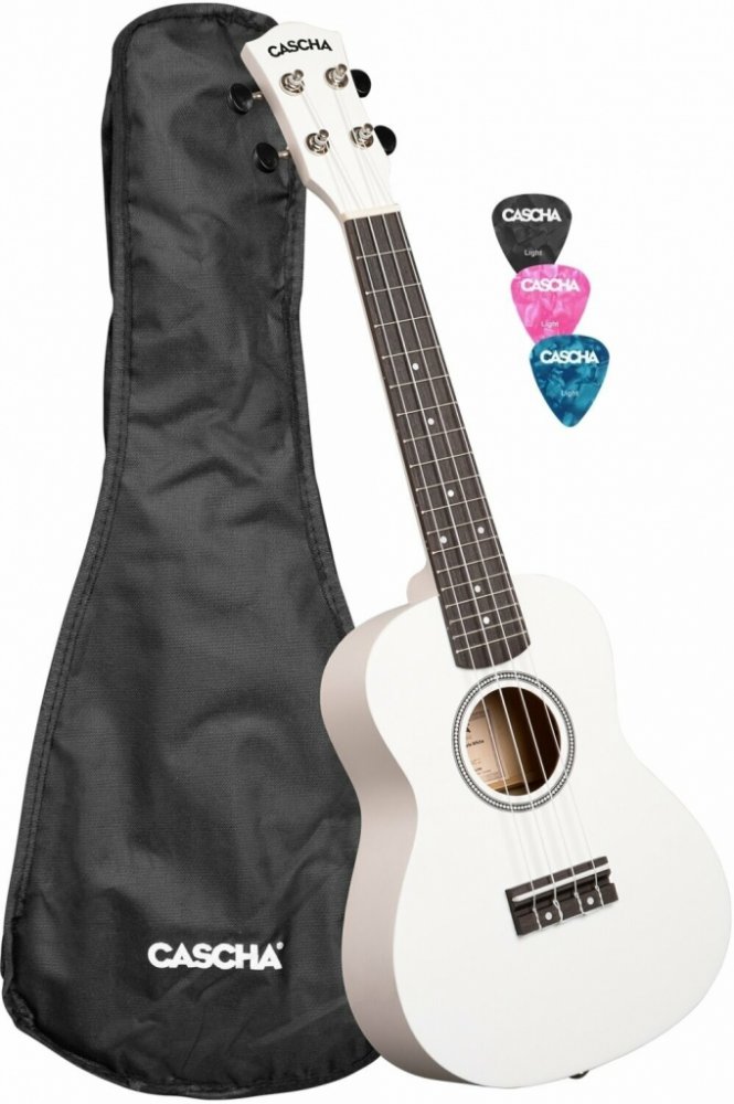 Akustické ukulele Akustické ukulele Cascha CUC106 Concert Linden White je cenově dostupný nástroj vhodný pro začínající ukulelisty a ukulelistky. Nabízí tělo zhotovené z laminované lípy, lipový krk, hmatník a kobylku z kompozitního materiálu a firemní ladící mechaniky kytarového typu. Ukulele je dodáváno v obalu spolu se třemi trsátky. Značka Cascha nabízí široké spektrum hudebních nástrojů s jedním společným jmenovatelem a tím je cenová dostupnost. Cíleně tak míří na potřeby začínajících muzikantů, kterým poskytuje kompletní servis.