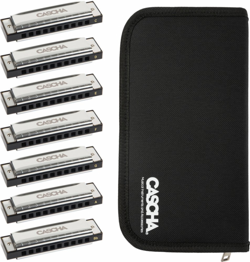 Tato sada obsahuje ústní harmoniky Cascha Blues v sedmi ladění (C - D - E - F - G - A - Bb) zabalených v praktickém pouzdře na bezpečnou přepravu. Blues Harmonica od CASCHA nepřesvědčí pouze svým klasickým vzhledem. Vysoce kvalitní zpracování a měděné plátky poskytují vyvážený zvuk, který okamžitě přesvědčí začátečníky i pokročilé hráče. CASCHA Blues Harmonica rozvíjí svůj plný potenciál v kombina...
