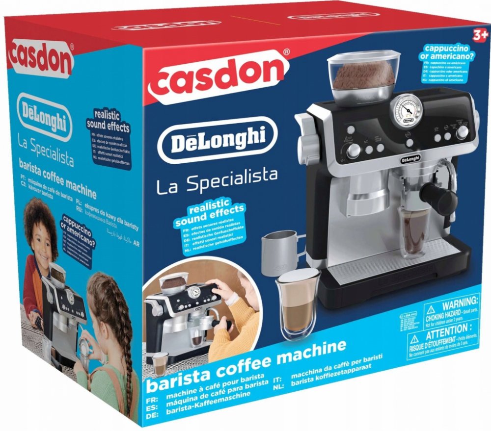 Potěšte své ratolesti kávovarem Casdon DeLonghi La Specialista Barista. Tento pokročilý hračkářský kávovar je dodáván s realistickými zvuky a kouzelným odhalením kávy, díky čemuž je dokonalým doplňkem každé hrací kuchyňky.