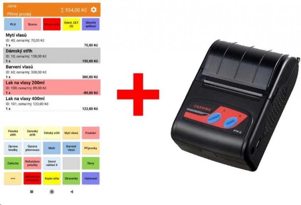 Pokladní tiskárna, rychlost 50-80mm/s, šířka až 58mm, USB, Bluetooth, výdrž baterie až 8 hodin, kožené pouzdro zdarma - OPRAVENÉ Cashino PTP-II BT