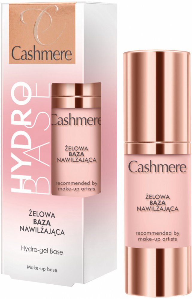 Hydro Base – Hydro-Gel Base od značky Cashmere. Podkladová báze pod make-up. Má příjemně gelovou konzistenci, která se okamžitě vstřebává a zároveň usnadňuje roztírání podkladu. Zanechává na pokožce efekt, díky kterému umožňuje pokožce dýchat a je také nepostřehnutelná při nošení. Účinně prodlužuje trvanlivost barevných kosmetických přípravků a intenzivně hydratuje pleť. Své účinky zakládá na bázi blahodárných aktivních složek: kyseliny hyaluronové a vitamínů A, D, E a F. Okamžitě zklidňuje a zklidňuje podráždění, zjemňuje a vyhlazuje pokožku a přitom jemně matuje. Kosmetika je umístěna v lahvičce o objemu 30 ml s dávkovací pumpičkou.