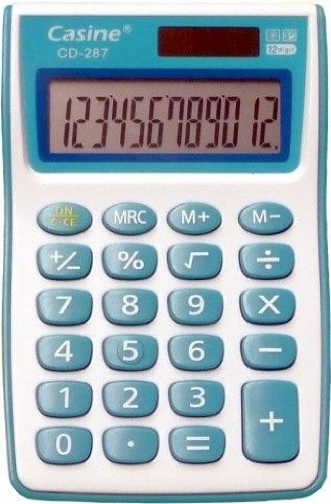 Stolní kalkulátor s 12-ti místným displejem pod úhlem, s plastovou klávesnicí pro dlouhou životnost, automatické vypnutí, výpočet %, odmocnin, +/-, paměť. Rozměry: 11,2 x 7,3 x 2,1 cm. Zdroj: solární a baterie LR1130 x 1