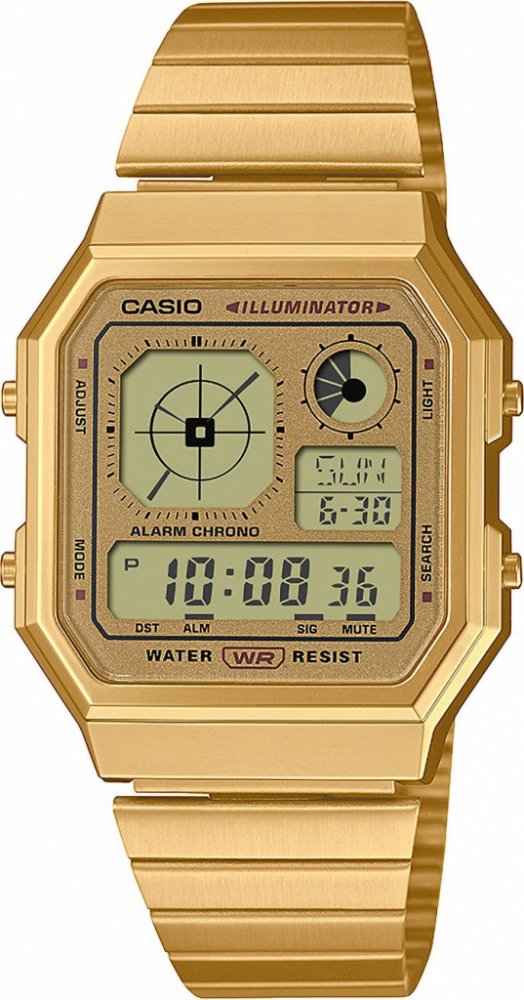 Digitální hodinky s analogovým displejem s hodinami, to vše zabalené do elegantního vzhledu, který máte rádi. Retro-futuristická tvář je kombinována se stylovými metalickými barvami a efektními akcentními barvami, které ukazují vášeň pro gadgety. Odvážně eklektické a také praktické. Nabitý praktickými funkcemi, jako je voděodolnost pro každodenní použití, LED podsvícení, stopky, alarm a další.