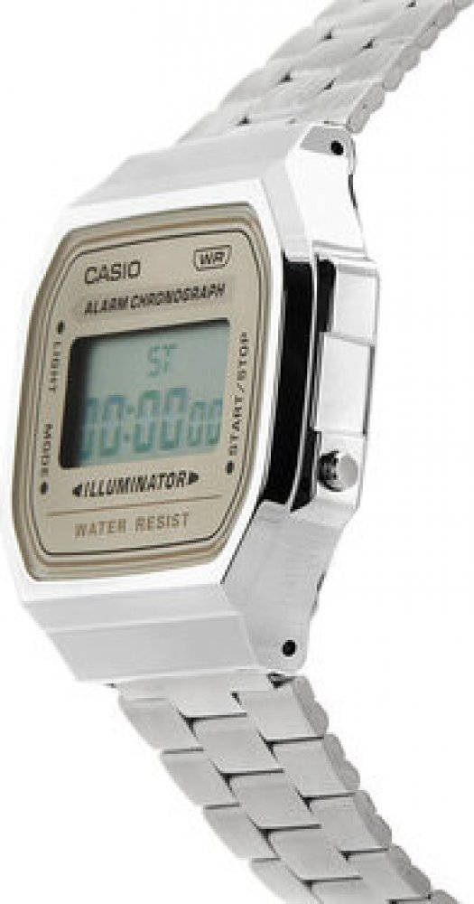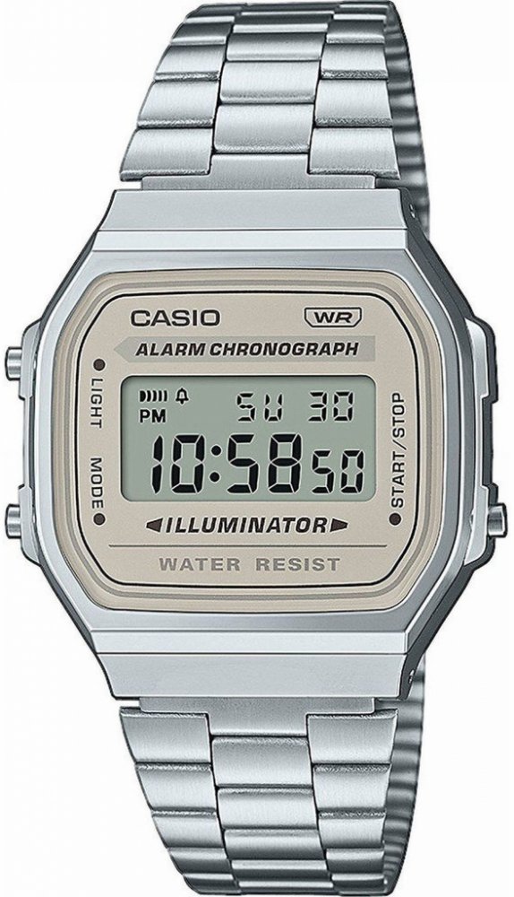 Casio digitální ocel plast 38.6 x 36.3 x 9.6 mm 30 m bateriové 50 g plastové vintage unisex 3.86 cm bateriové - quartz Classic Collection hranaté stříbrná béžová překlápěcí spona 1.8 cm s elektrickým podsvícením