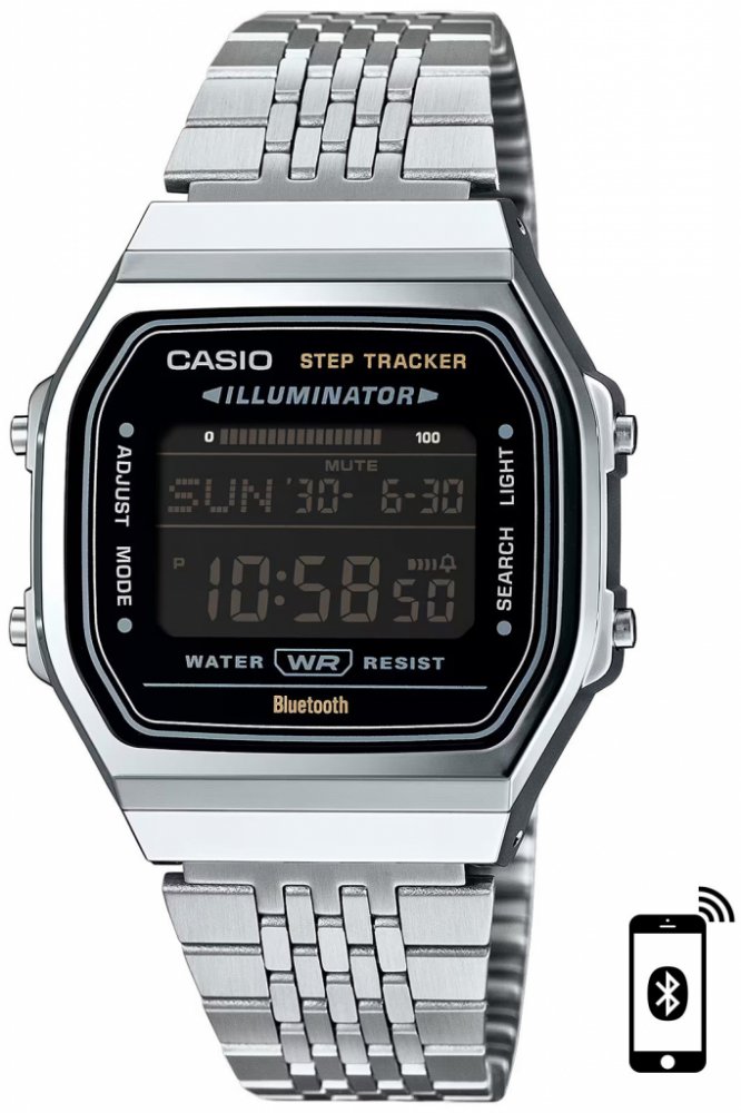 Casio digitální ocel plast 30 m bateriové 60 g plastové vintage unisex 20 cm bateriové - quartz Vintage kulaté stříbrná černá posuvná spona 1.8 cm s LED diodou