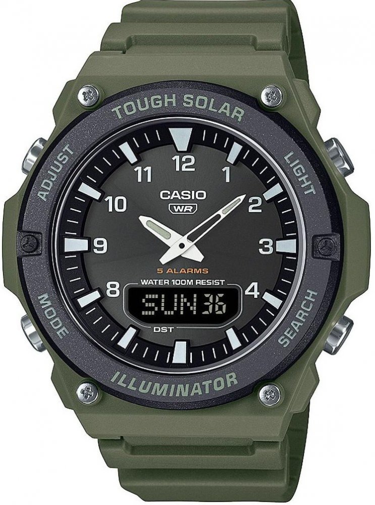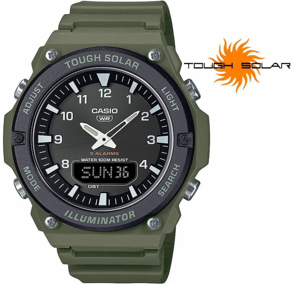 Casio kombinované pryskyřice sportovní pánské solární pro potápění (100+ m) 50.1 mm pryskyřice 52.5 x 50.1 x 12.7 mm 100 m solární 46 g plastové Classic Collection kulaté zelená černá s LED diodou trnová spona 5.01 cm na ruku japonské s arabskými číslicemi 5.01 cm velké s přesností 1/100 sekundy pevná 12.7 mm 12.7 mm s dočasným svícením (luminiscence/LED) s nenáročnou údržbou (quartz) bez chytrých funkcí