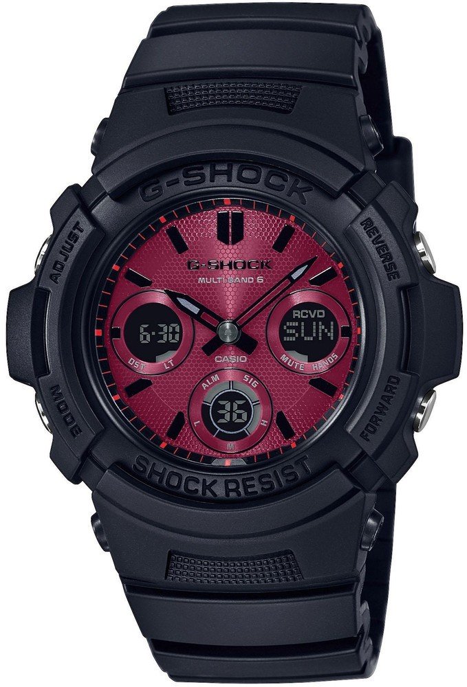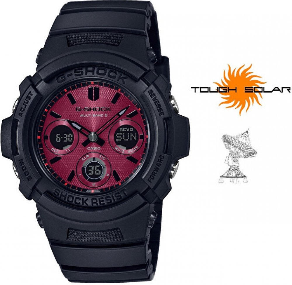 Casio kombinované plast plast 46.4 x 52 x 14.9 mm 200 m solární 56 g minerální sportovní pánské solární G-Shock kulaté černá červená s LED diodou