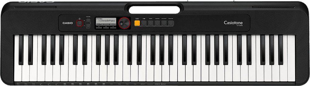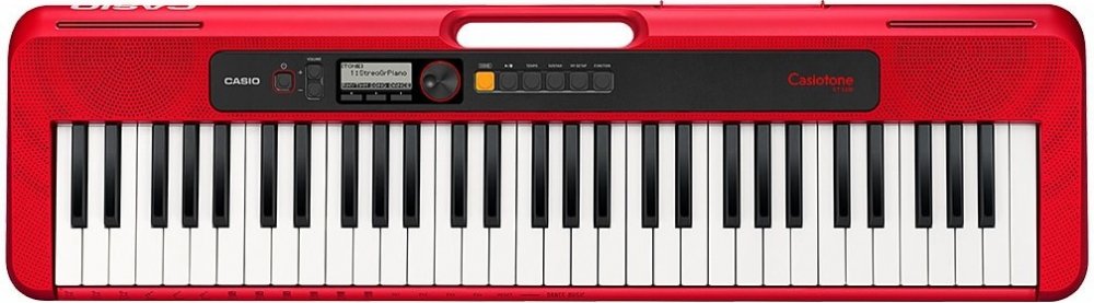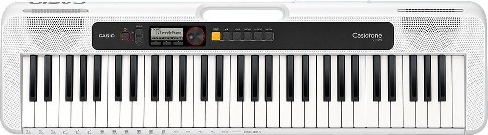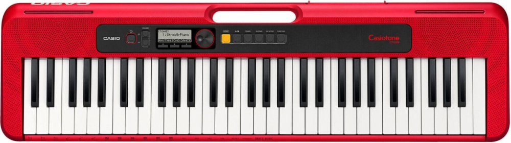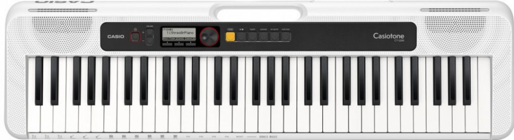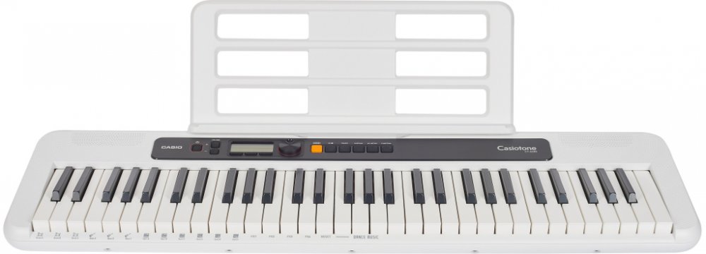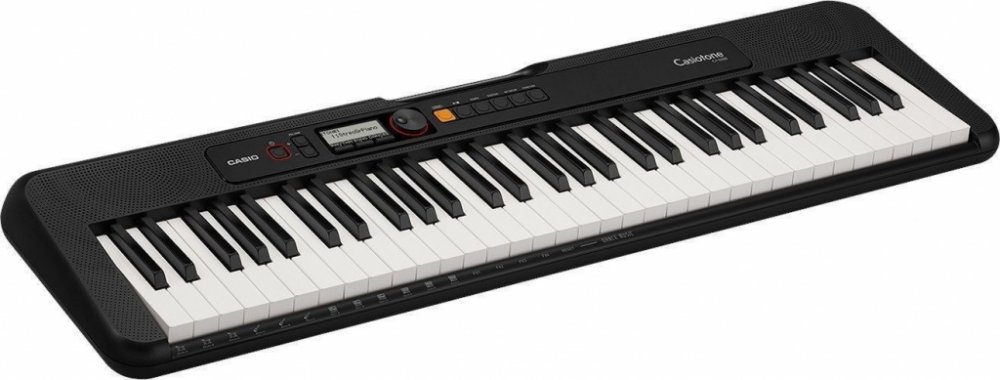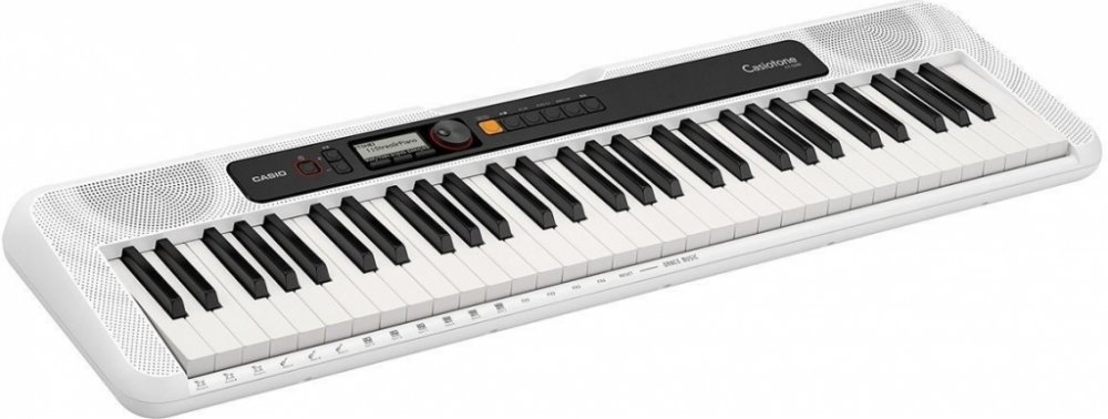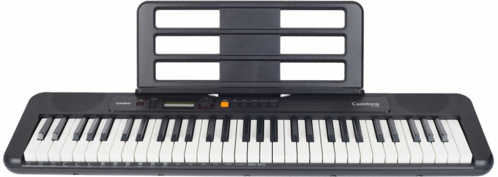 Casio CT-S200 disponuje 61 standardními klávesami, zvukový signál můžete obohatit deseti Reverb efekty, 400 zvukovými rejstříky, nebo využít automatického doprovodu, kdy máte na výběr 77 rytmů. Klávesy dále nabízí integrovaný metronom, tlačítko transpozice/ladění a konektory pro MIDI příjem. Přehledný displej vám zobrazí nastavení kláves, tento model také obsahuje zábavný režim Dance Music, který umožňuje hrát moderní taneční styly i naprostým začátečníkům. Dance Music obsahuje padesát hudebník vzorů a nespočet hlasových efektů. O zvuk se postarají dva 2,5W reproduktory a pokud patříte mezi noční hráče, určitě využijete i sluchátkový výstup na zadní straně. Zadní panel dále nabízí Aux vstup pro mikrofon(Režim Dance Music)/hudební přehrávač a výstup pro sustain pedál. CT-S200 je k dostání ve třech barevných odstínech, skvěle tak doplní vaši moderně vybavenou domácnost nebo hudební třídu.