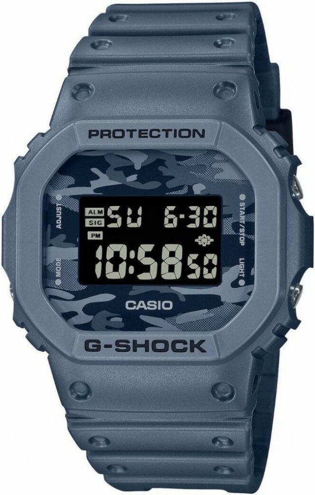 Casio digitální plast sportovní pánské bateriové - quartz pryskyřice 200 m bateriové 53 g minerální bez osazení G-Shock hranaté modrá vícebarevná s elektrickým podsvícením trnová spona na ruku maskáčové s arabskými číslicemi stříbrná ocel pevná pryskyřice s dočasným svícením (luminiscence/LED) bez chytrých funkcí