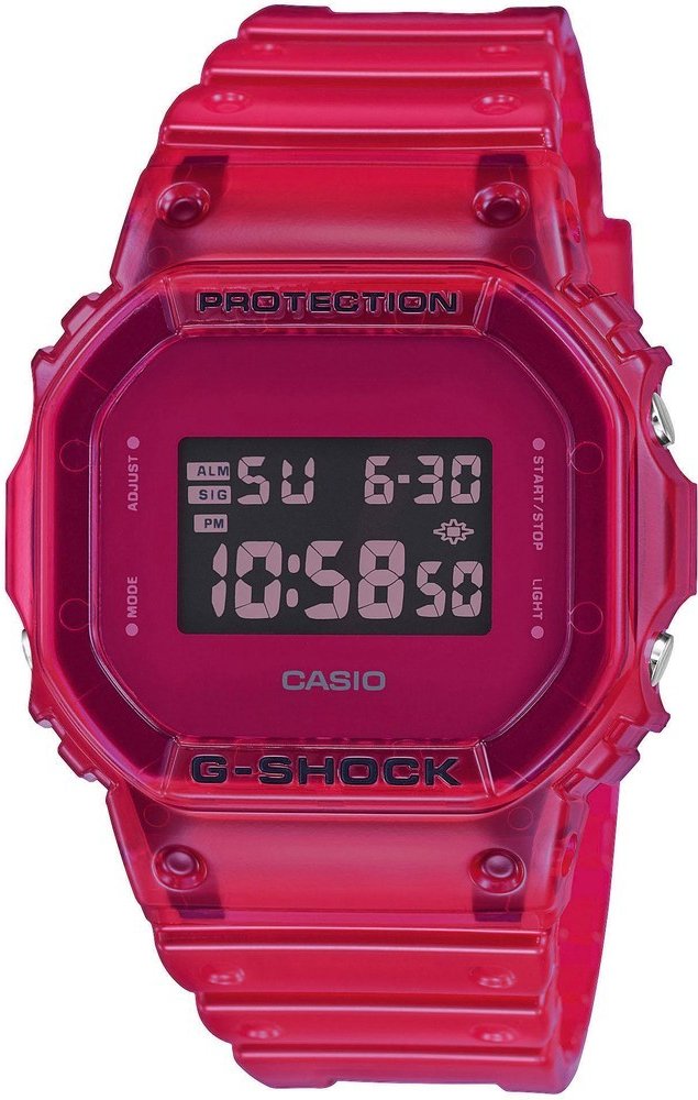 Casio digitální pryskyřice pryskyřice 42.8 x 48.9 x 13.4 mm 200 m bateriové 53 g plastové sportovní pánské bateriové - quartz bez osazení G-Shock osmihranné růžová růžová na přezku s nenáročnou údržbou (quartz) bez chytrých funkcí na ruku s arabskými číslicemi pevná pryskyřice s LED diodou