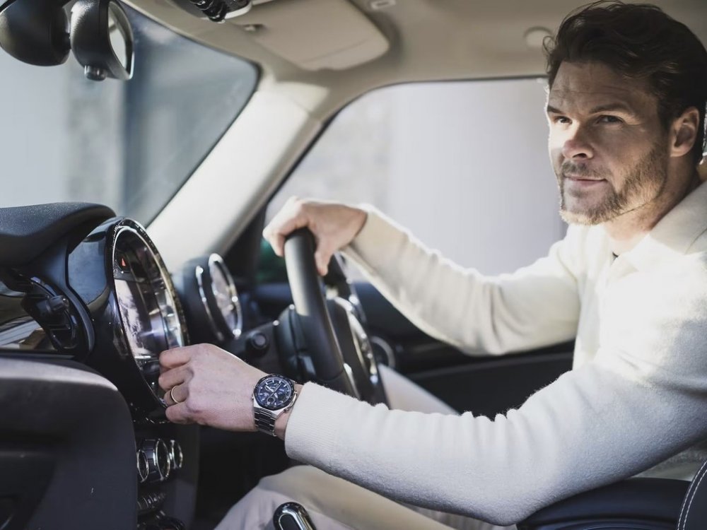 Odvážný design lunety: Čtyři robustní úchyty a tachymetrická stupnice dávají hodinkám silný, mechanický a sportovní charakter.