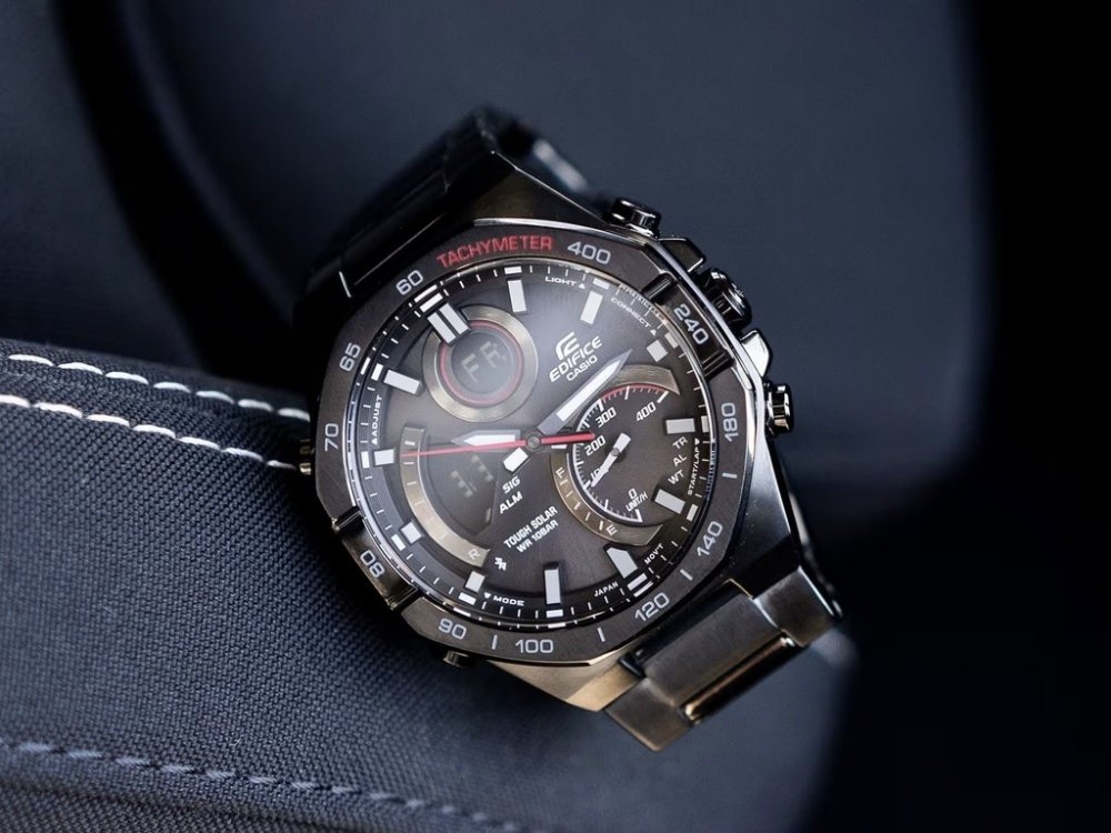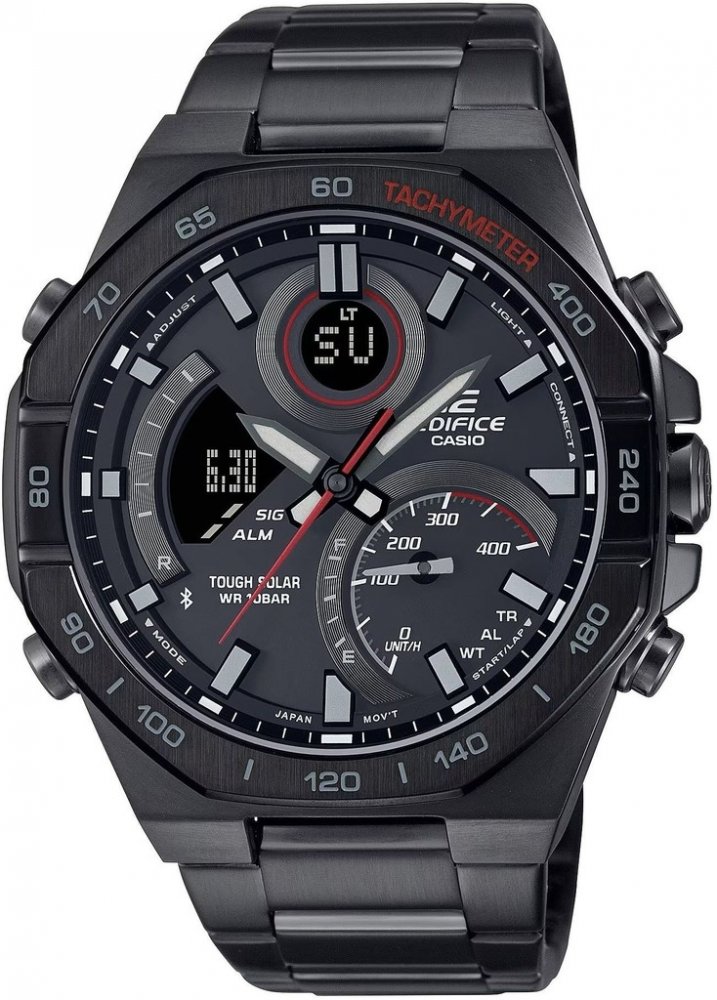 Podrobnosti o produktu ECB-950DC-1AEF Solární napájení a propojení s Bluetooth, to jsou sportovní hodinky značky Casio z řady Edifice jako stvořené pro závodníky. Hodinky jsou vyrobené z oceli, která je potažena PVD vrstvou v černé barvě. Z funkcí, které jsou u navíc , můžete využít například kontrola stavu baterie, tón tlačítek (lze vypnout), ukazatel rychlosti či automatická kalibrace ručiček.