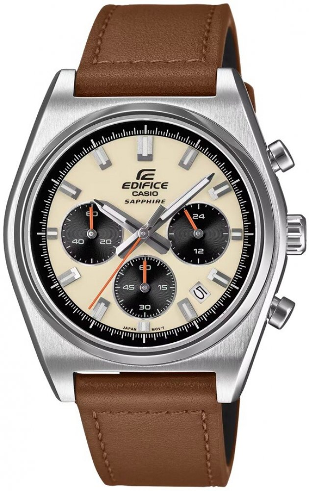 Představujeme chronograf EDIFICE pro motorsport inspirovaný klasickým sportovním vozem. Výrazné indexové lišty se spojují s legendárním rozložením ciferníku 3-6-9 v osvědčeném sportovním designu. Menší průměr pouzdra dodává elegantní vzhled naprosté rychlosti. Díky safírovému sklu, pouzdru z nerezové oceli a pásku z pravé kůže jsou tyto hodinky vodotěsné až do 10 barů. Tento sportovní, klasický ch...