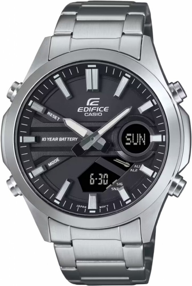 Hodinky CASIO Edifice EFV-C120D-1AEF představují perfektní spojení elegance a praktičnosti, které ocení každý muž. Tento model nabízí stylový černý ciferník, jenž kontrastuje s ocelovým řemínkem a pouzdrem ve stříbrno-šedém provedení, čímž vytváří univerzální vzhled vhodný pro pracovní i volnočasové aktivity.