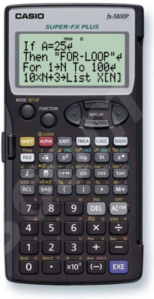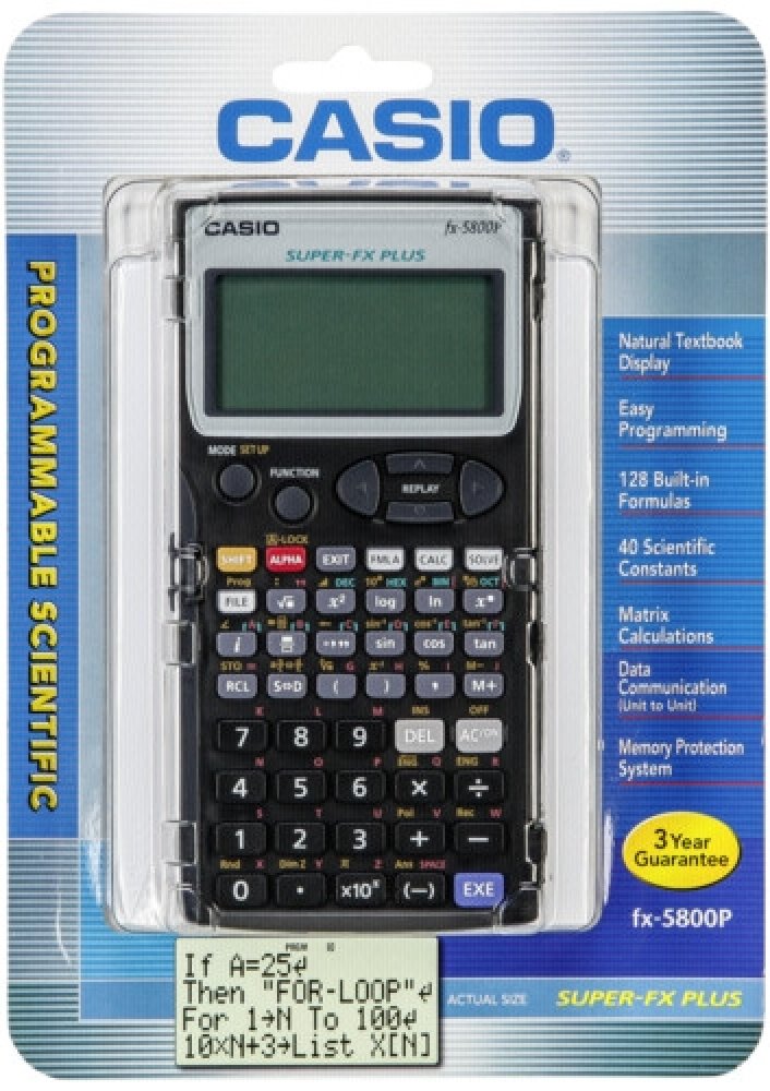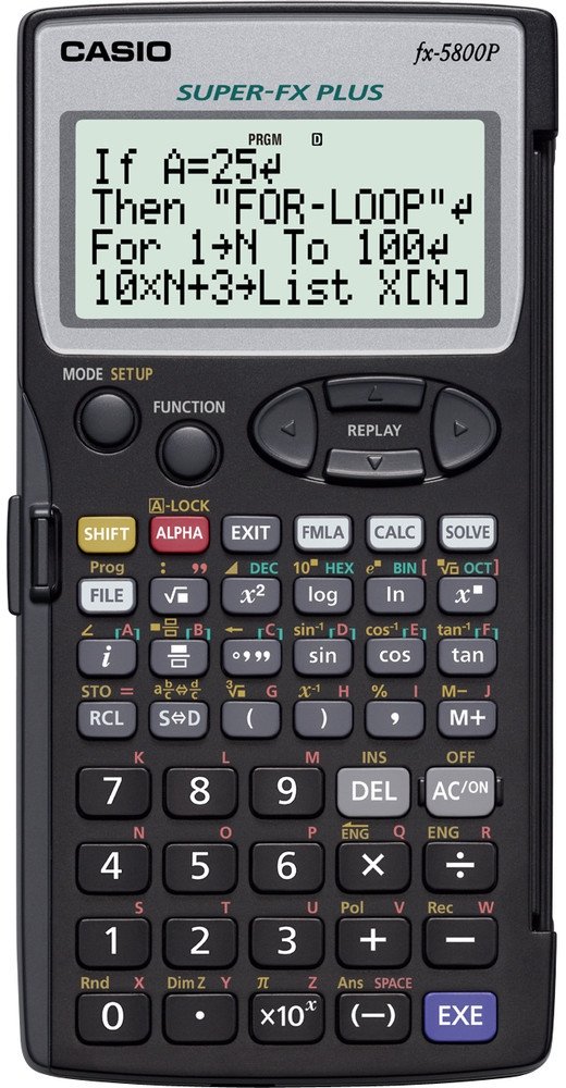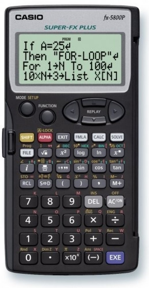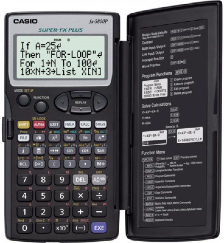 Programovatelný kalkulátor Casio FX 5800 P s 4-řádkovým displejem.