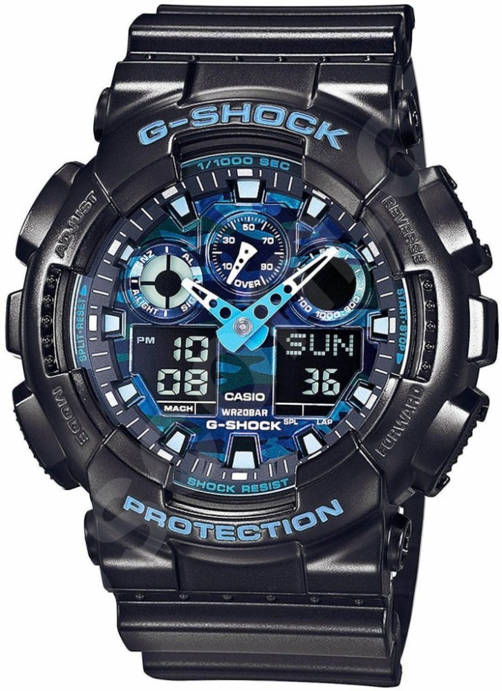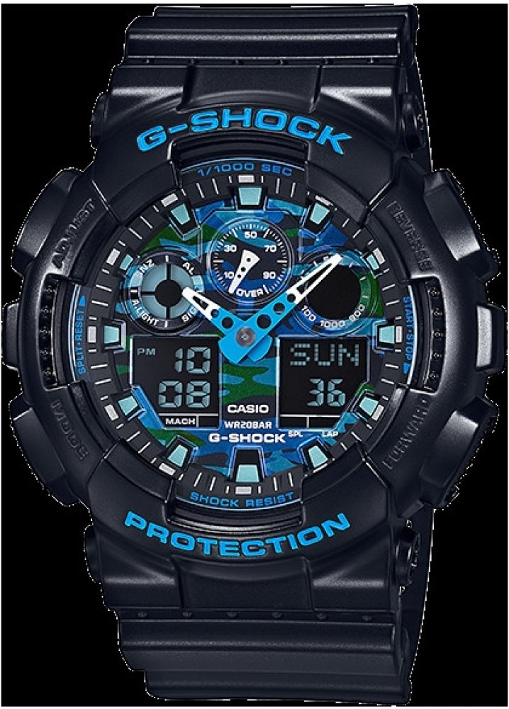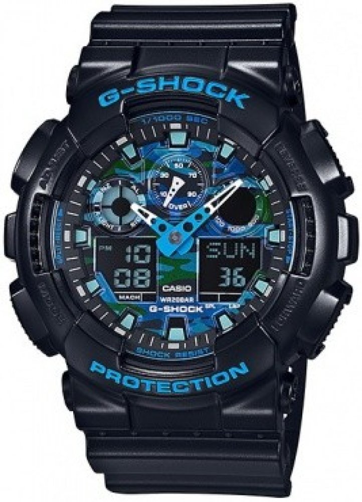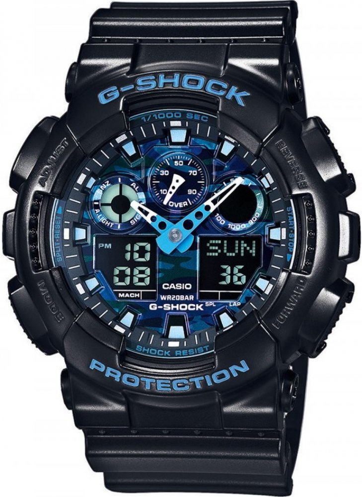 Casio kombinované plast sportovní pánské bateriové - quartz pro potápění (100+ m) pryskyřice 200 m bateriové 70 g minerální bez osazení G-Shock kulaté černá modrá s elektrickým podsvícením na přezku na ruku maskáčové bez číslic černá ocel 16.9 mm s dočasným svícením (luminiscence/LED) bez chytrých funkcí