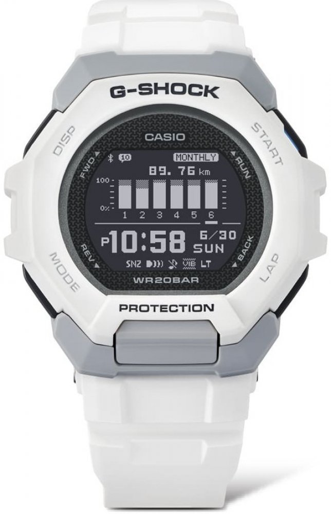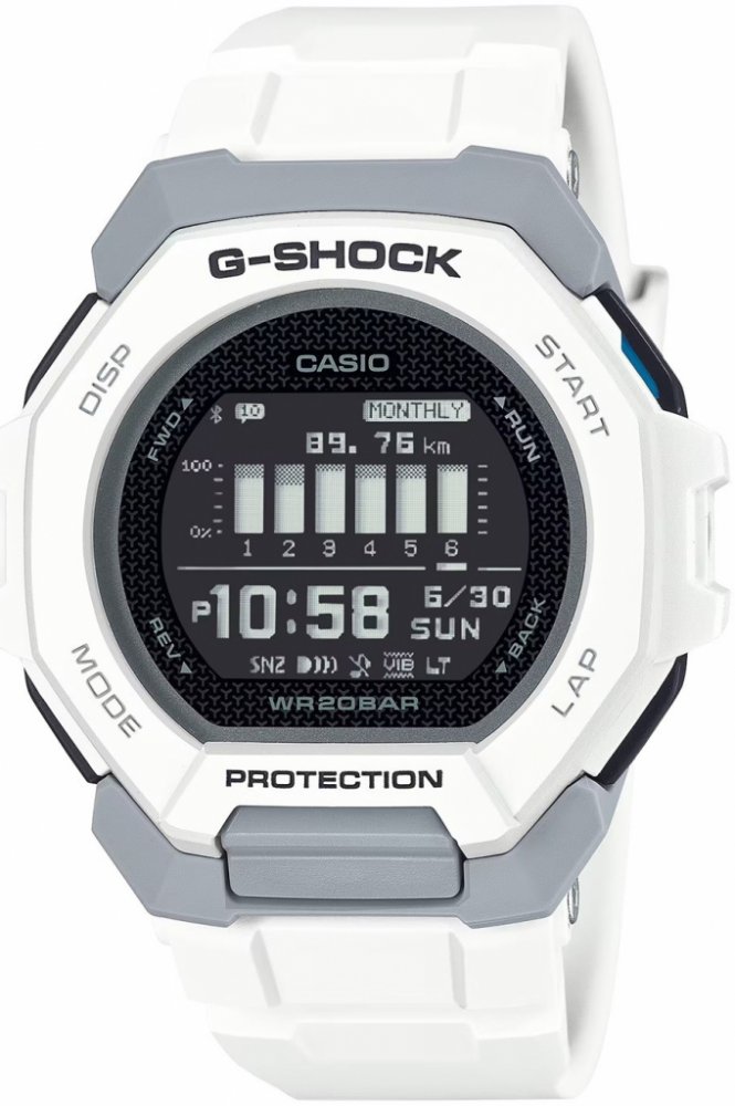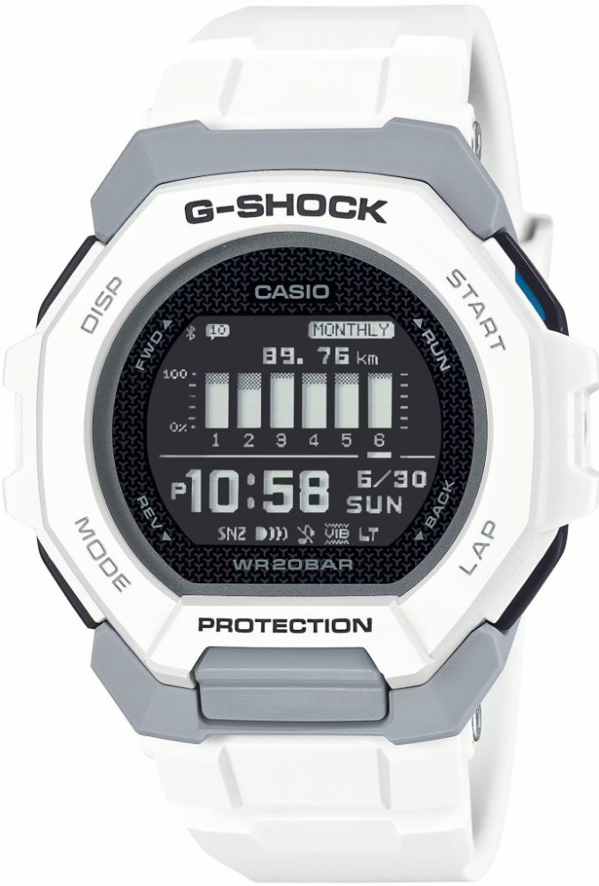 Pánské digitální hodinky CASIO G-SHOCK GBD-300-7ER jsou vyrobeny z plastu v šedé a bílé barvě.