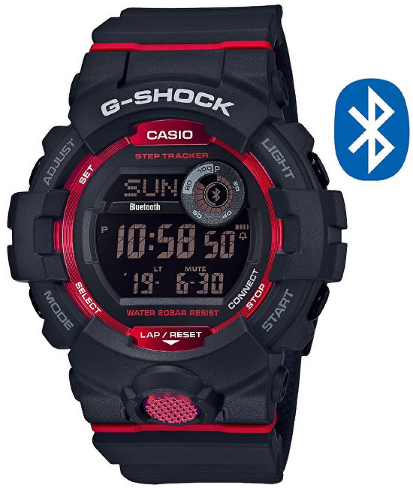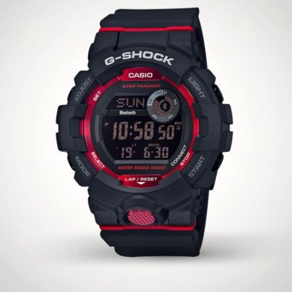 Casio G-Shock G-Squad GBD 800-1 mají digitální ciferník, který zobrazuje datum, den v týdnu, stopky, budík a spoustu dalších funkcí. Novinkou je zabudovaný krokoměr a možnost propojení s telefonem skrze bluetooth, díky čemuž můžete snadno sledovat svou denní aktivitu. Pouzdro hodinek, včetně řemínku, je pryžové. Ciferník chrání minerální sklíčko. Lepší čitelnost při zhoršených světelných podmínkách zajišťuje LED osvětlení displeje. Díky průměru pouzdra 48,6 mm se řadí mezi rozměrově vetší hodinky. Vodotěsnost tohoto modelu je 200M, s hodinkami tedy můžete bez problémů plavat, či se dokonce potápět.