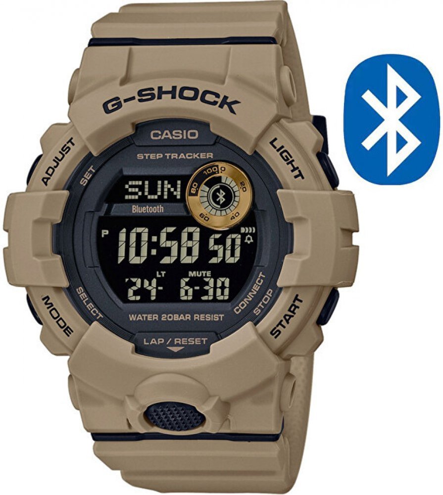 Pánské digitální hodinky CASIO G-SHOCK GBD 800UC-5ER jsou vyrobeny z plastu ve světle hnědé barvě. Hlavní předností těchto hodinek je bezdrátová technologie Bluetooth, která dokáže propojit hodinky s vašim mobilním telefonem. Hodinky jsou dále vybaveny stopkami s pamětí na 200 mezičasů, odpočtem, budíkem, krokoměrem a datumovkou. Nesmí chybět praktické LED osvětlení ciferníku. Napájení je formou b...