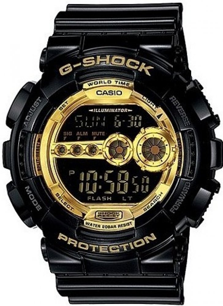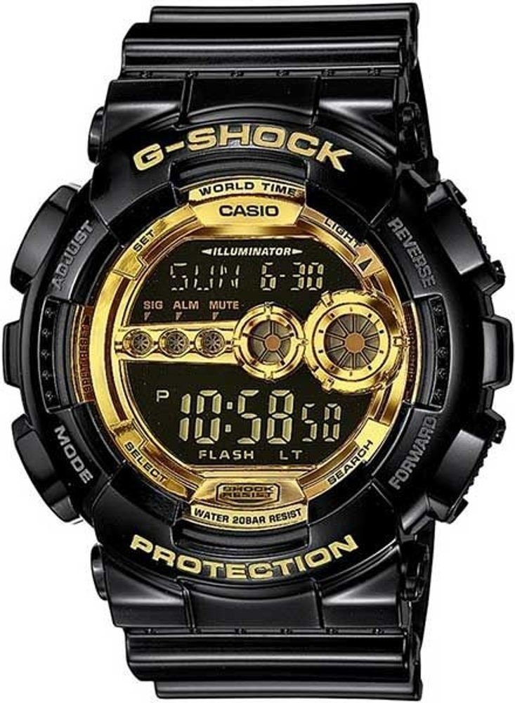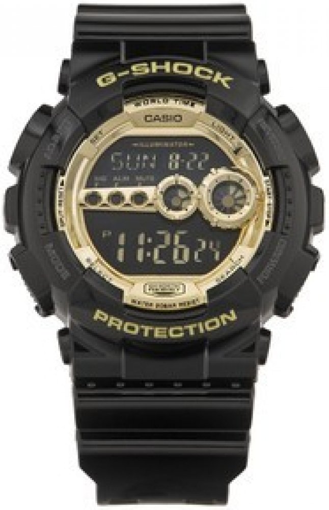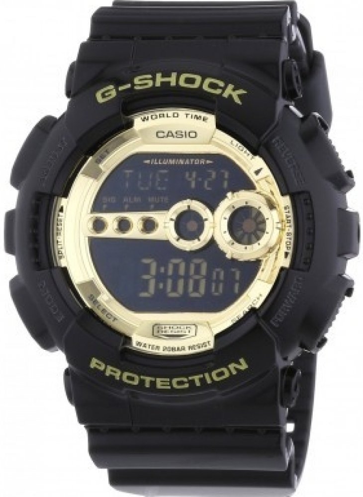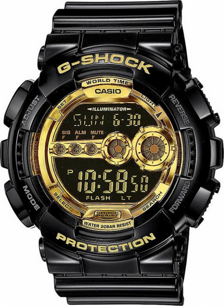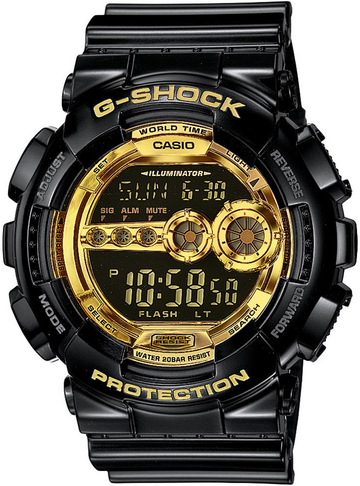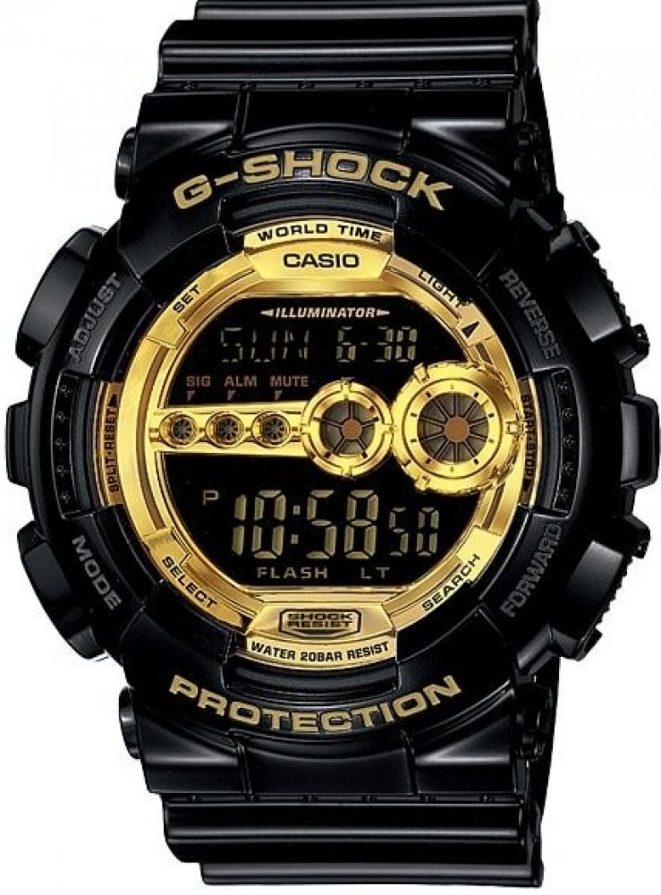 Masivní pánské hodinky Casio GD 100GB-1 v černo-zlatém provedení. Hodinky mají plastový pásek, pouzdro ve tvaru kruhu, digitální ciferník, který doplňuje datumovka, stopky, budíky a další funkce. Tyto hodinky ocení každý muž.