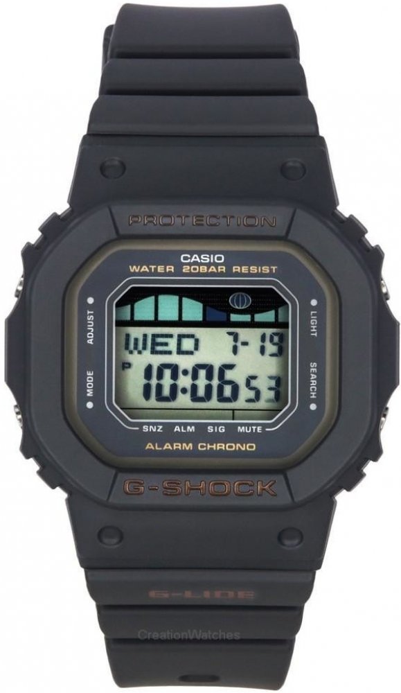 Casio digitální pryskyřice sportovní dámské bateriové - quartz pro potápění (100+ m) 40.5 mm pryskyřice 200 m bateriové 41 g minerální bez osazení G-LIDE hranaté šedá šedá s LED diodou trnová spona 2.4 cm na ruku s arabskými číslicemi pevná pryskyřice 11.9 mm s nenáročnou údržbou (quartz) bez chytrých funkcí