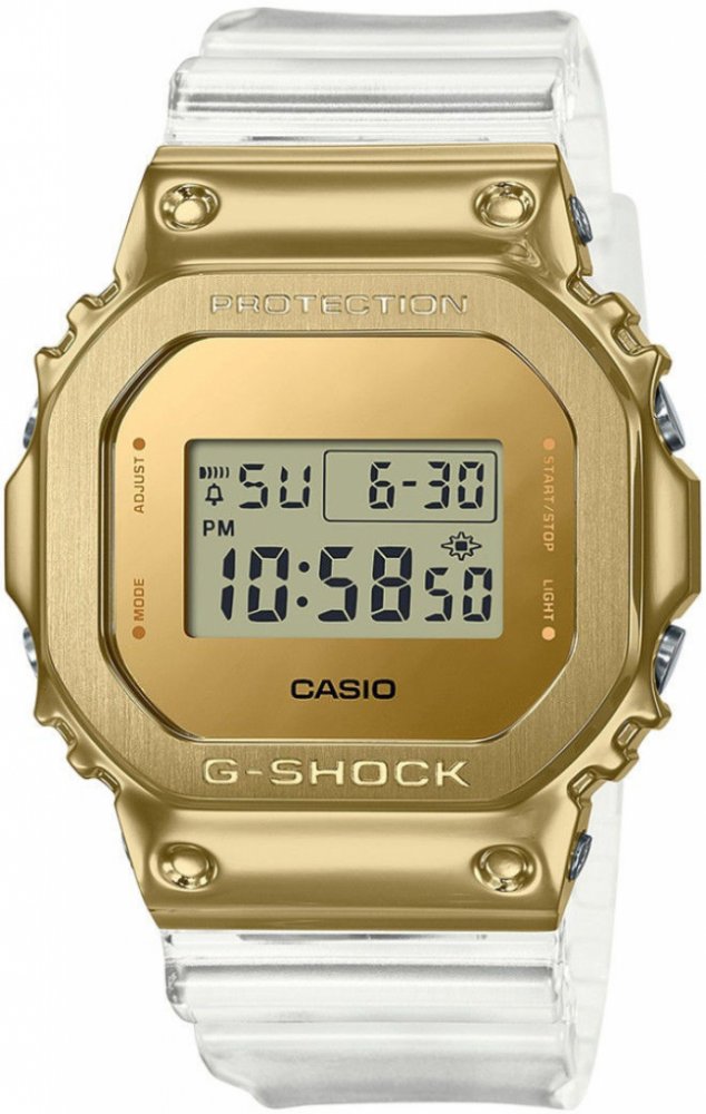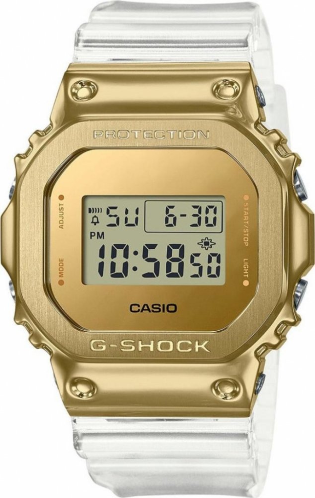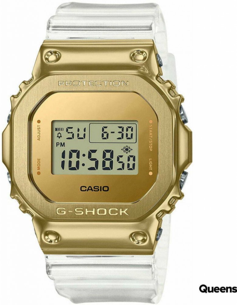 Casio digitální pryskyřice sportovní pánské bateriové - quartz kov 49.6 x 43.2 x 12.9 mm 200 m bateriové 73 g minerální 21 cm bez osazení G-Shock hranaté transparentní zlatá s elektrickým podsvícením kolíčková spona 2.6 cm na ruku pevná ocel bez chytrých funkcí