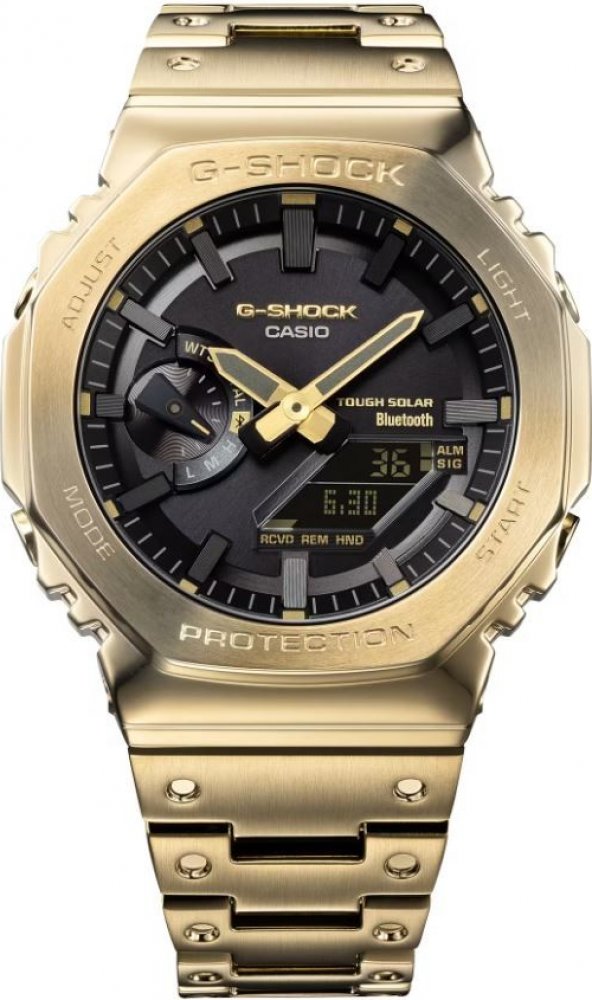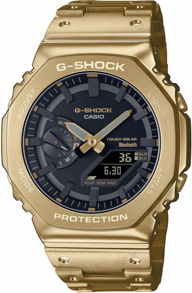Řada G-Shock GM-B2100 je novinkou vycházející z populárních G-Shock GA-B2100. Pouzdro o průměru 44,4 milimetru má výšku pouhých 12,8 milimetru a spolu s náramkem s překlápěcí sponou je vyrobeno z nerezové oceli s povrchovou úpravou zlaté barvy. O chod hodinek se stará strojek se solárním napájením Tough Solar a je možné se s nimi i potápět, jelikož jejich vodotěsnost dosahuje 200 metrů. Dají se ro...