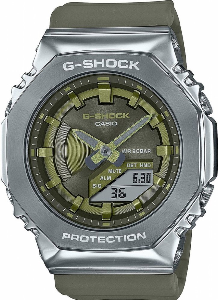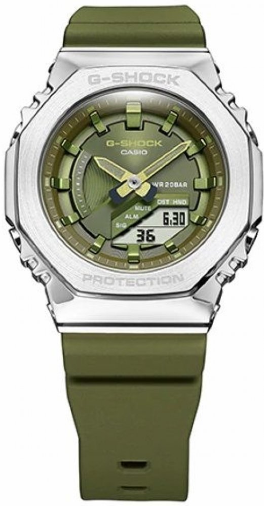 Unisex stylové nárazuvzdorné digitální hodinky CASIO GM-S2100-3AER jsou vyrobené z kvalitní nerezové oceli ve stříbrné barvě v kombinaci se zeleným plastovým řemínkem. Tento model přináší na vaše zápěstí nejen styl a odolnost, ale také spoustu sportovních a praktický funkcí. Hodinky nabízí: stopky, odpočet, budíky, datum a hodinový signál. Samozřejmě nesmí chybět dnes již nepostradatelné LED osvět...