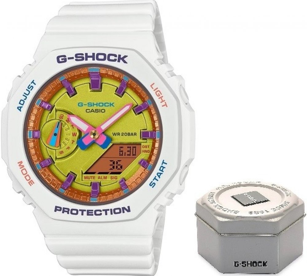 Casio digitální pryž sportovní dámské bateriové - quartz pro potápění (100+ m) 42.9 mm pryskyřice 46.2 x 42.9 x 11.2 mm 200 m bateriové 42.0 g minerální 4.62 cm bez osazení G-Shock osmihranné bílá zelená s LED diodou trnová spona 4.29 cm na ruku s arabskými číslicemi 4.29 cm střední 11.2 mm s dočasným svícením (luminiscence/LED) s nenáročnou údržbou (quartz) bez chytrých funkcí