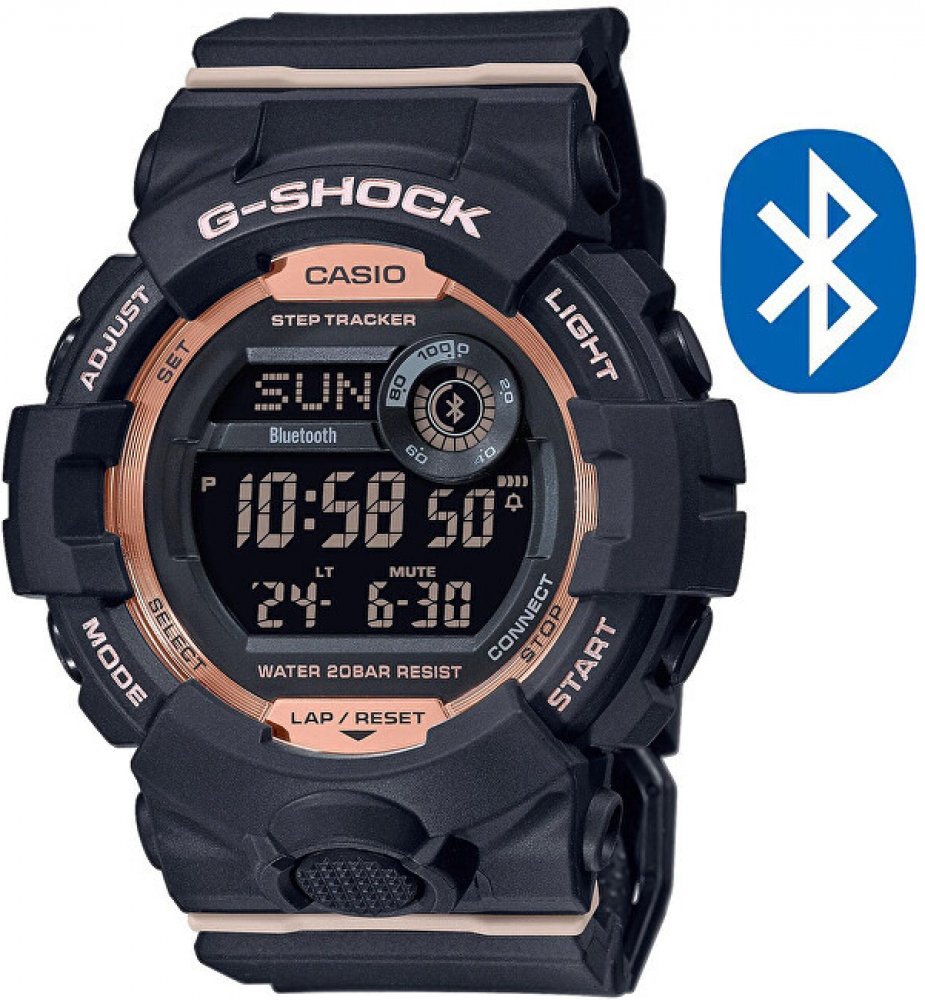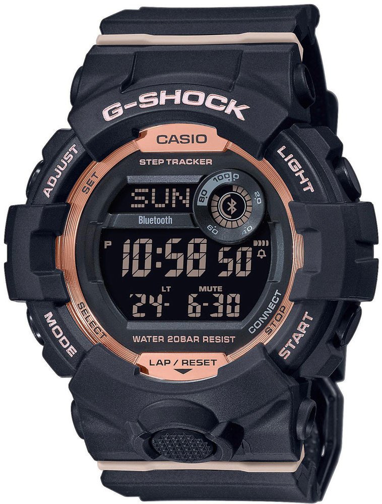 Unisex hodinky CASIO G-Shock GMD-B800-1ER představují odolný multifunkční model. Černý digitální číselník s rámečkem v barvě růžového zlata nabízí celou řadu funkcí, jako jsou duální čas, stopky, automatický ukazatel data, dne v týdnu a měsíce, letní čas, časová pásma, světové časy, ukazatel 24 hodin, stopky a pětinásobný budík. Další výbava obsahuje funkci "najdi telefon" přes Bluetooth a automat...
