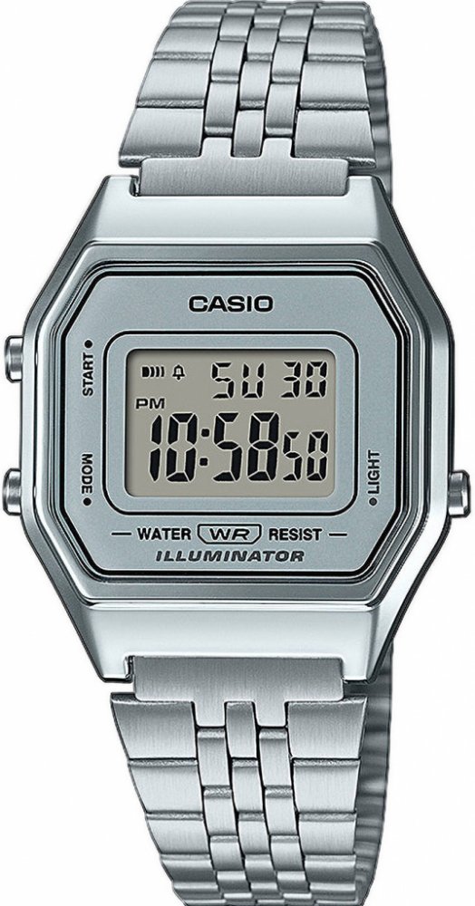 Casio digitální ocel vintage dámské bateriové - quartz 28.6 mm ocel 30 m bateriové 36 g plastové 2.9 cm bez osazení Vintage osmihranné stříbrná stříbrná s elektrickým podsvícením překlápěcí spona 1.7 cm na ruku stříbrná ocel 8.6 mm s dočasným svícením (luminiscence/LED) s nenáročnou údržbou (quartz) bez chytrých funkcí