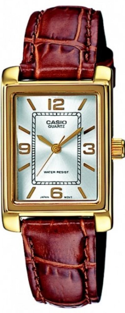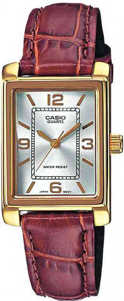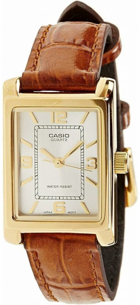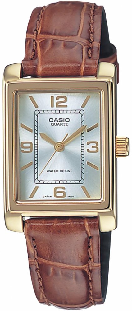 Casio analogové kůže ocel 30 m bateriové 22 g minerální klasické dámské 2.05 cm bateriové - quartz bez osazení Collection obdélníkové hnědá stříbrná trnová spona