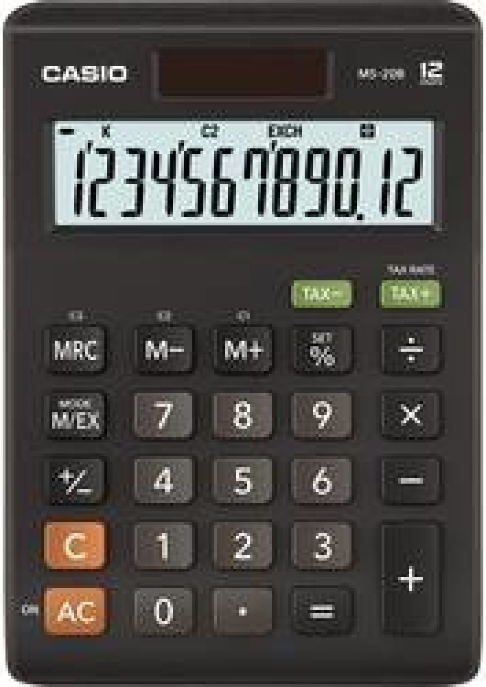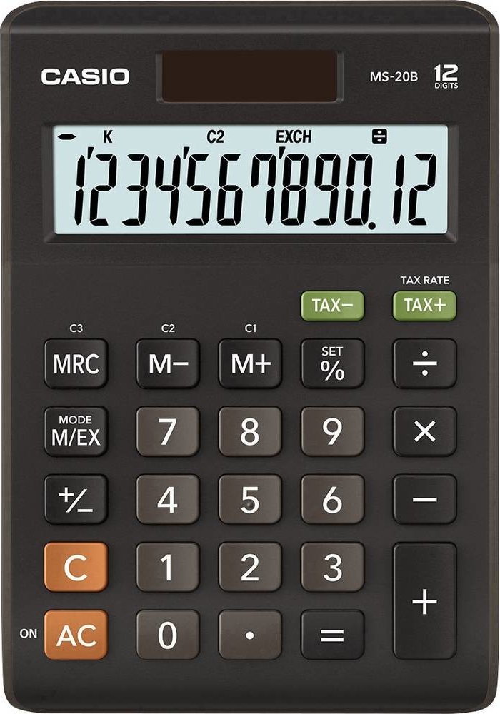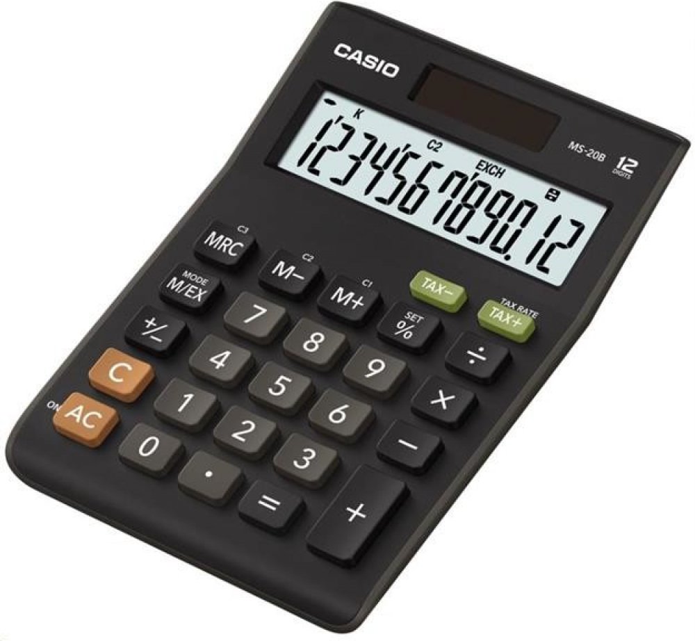 Stolní kalkulátor, 12-ti místný displej, výpočet DPH a procent, vyrovnávací paměť.