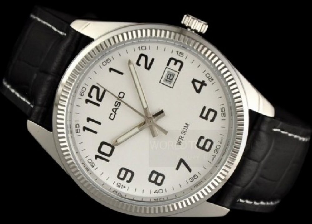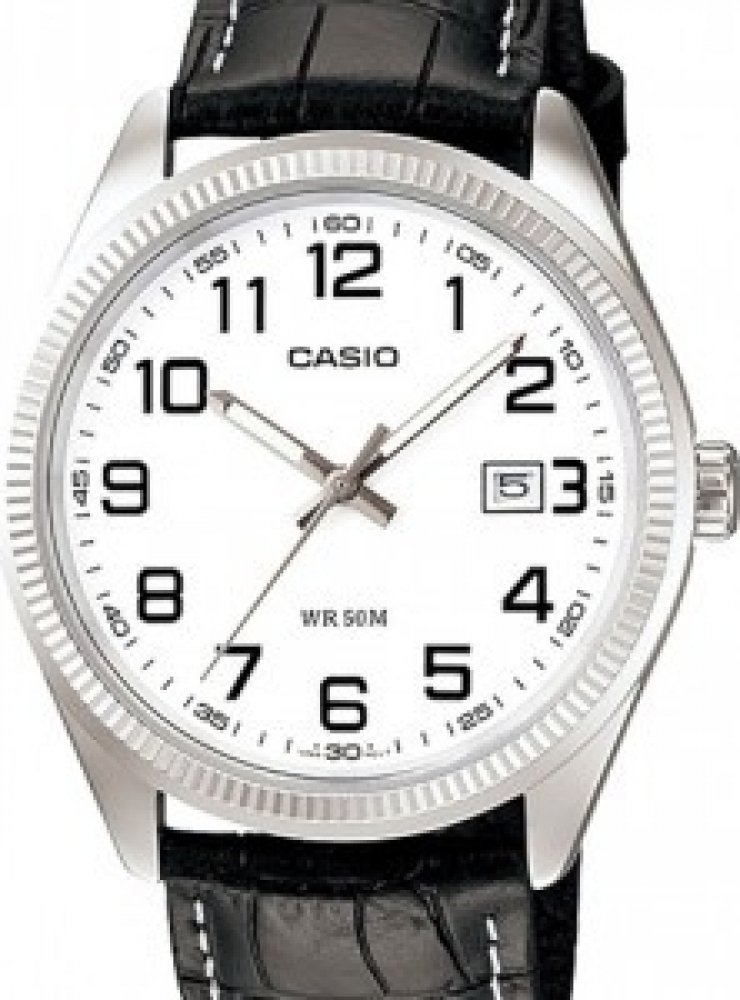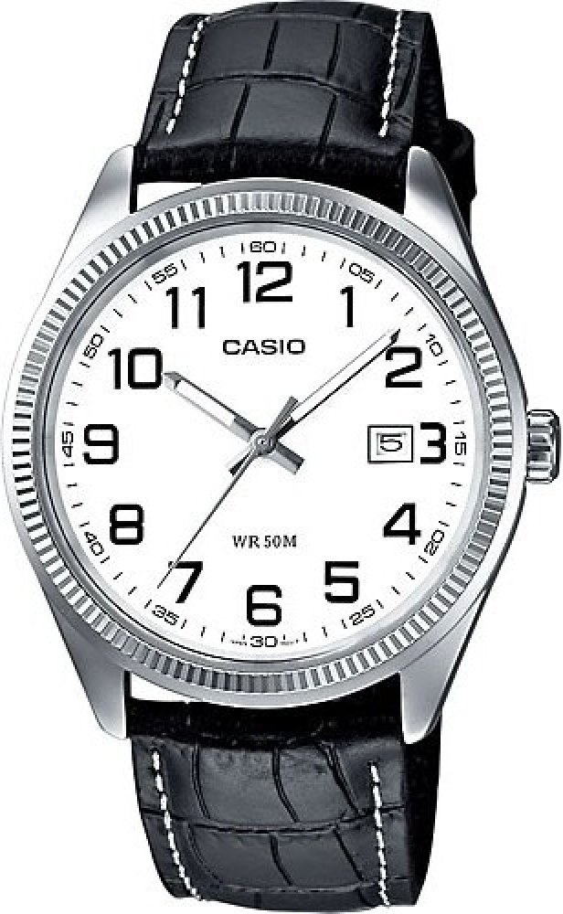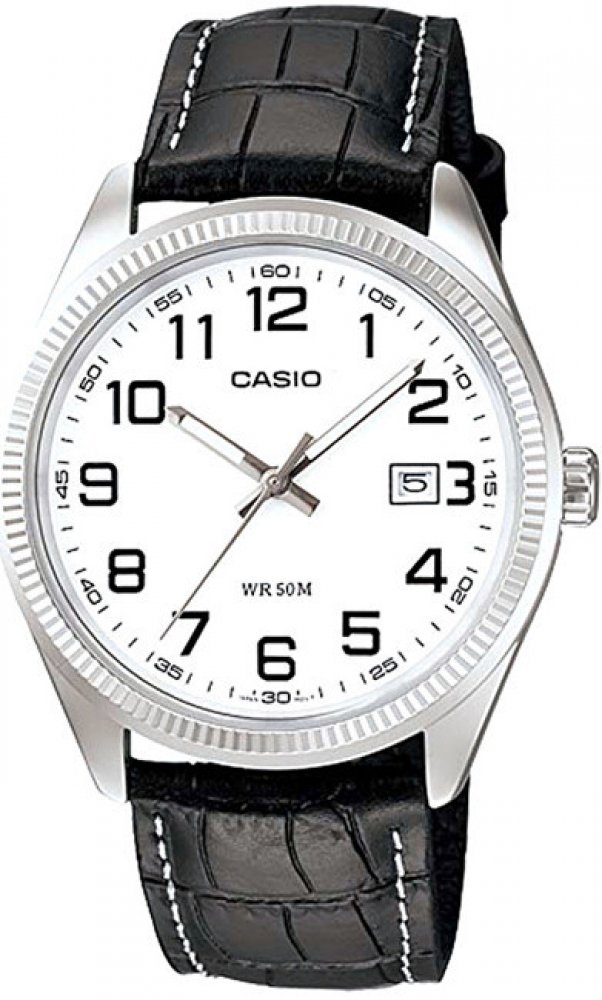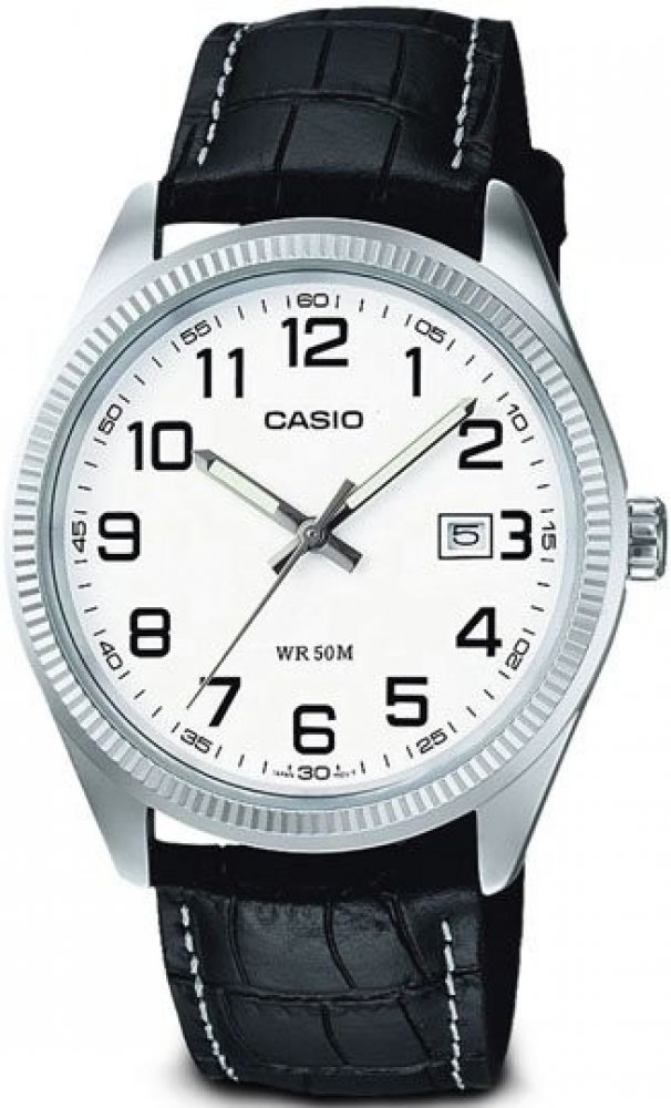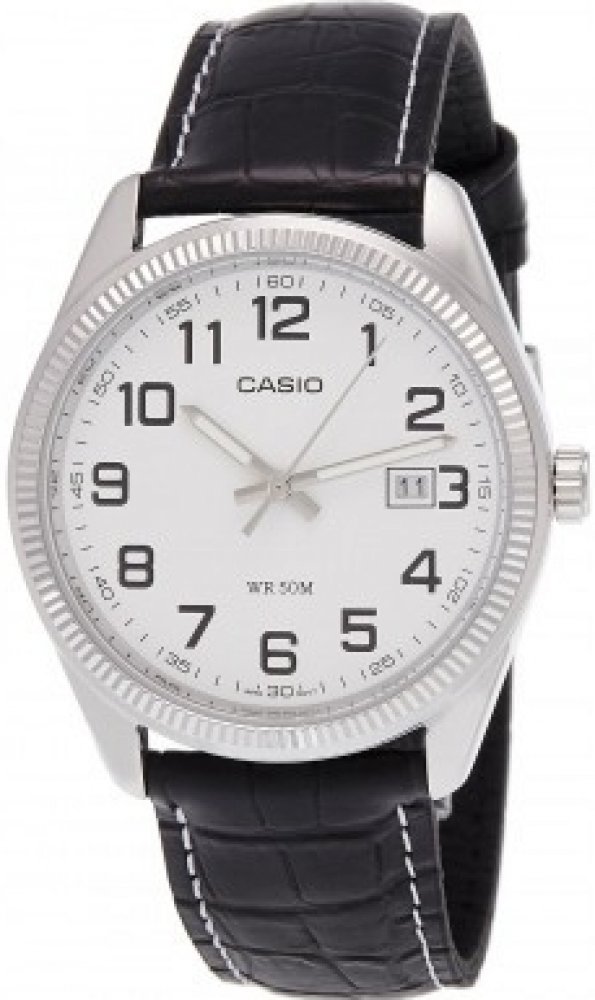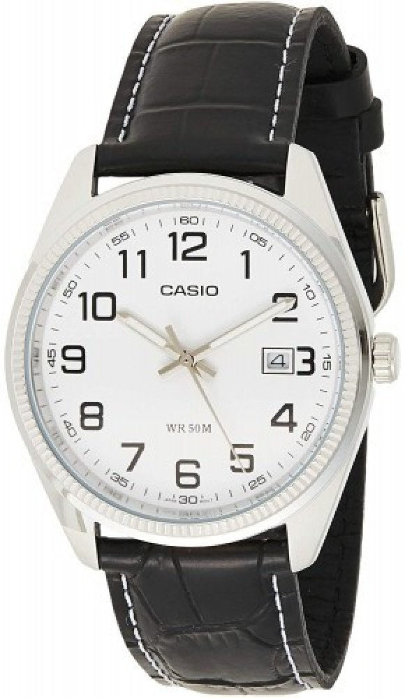 Casio analogové kůže klasické pánské bateriové - quartz 38.5 mm mosaz 39 x 44 x 9 mm 50 m bateriové 64 g minerální bez osazení Collection kulaté černá bílá s luminiscencí 9.2 mm
