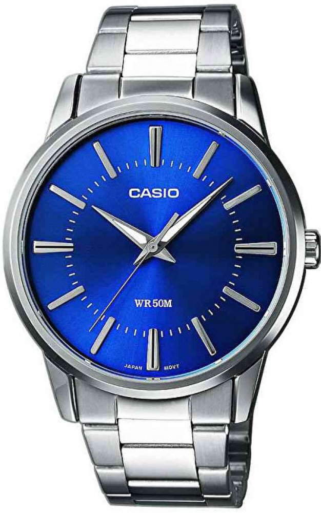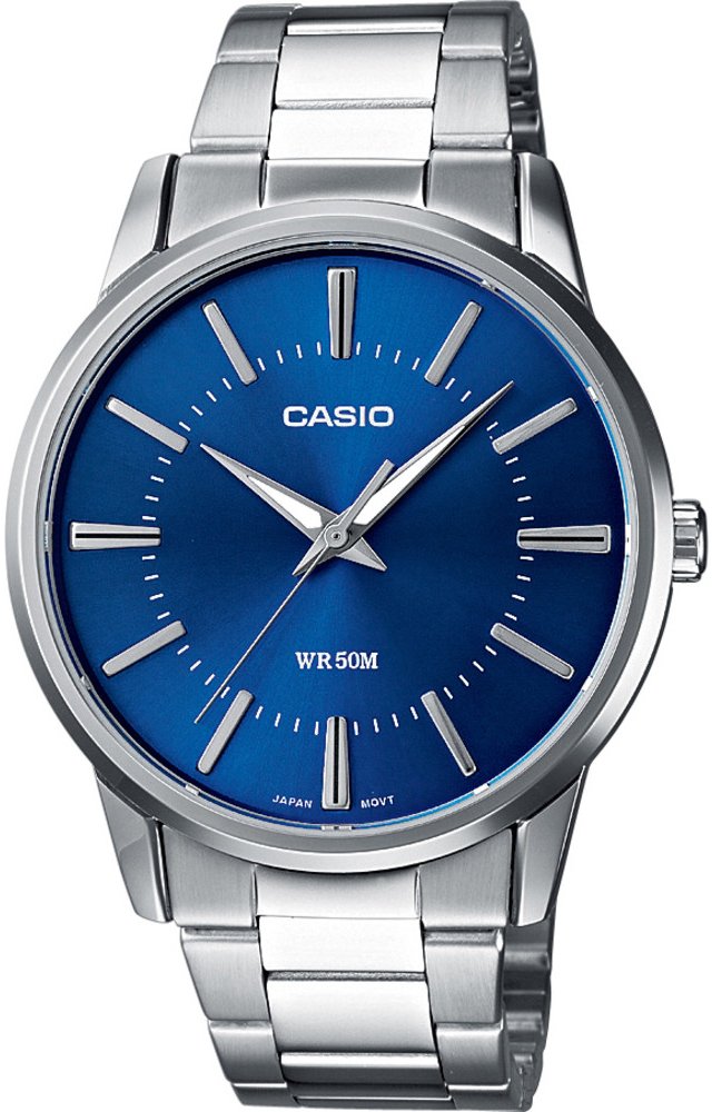 Casio analogové ocel mosaz 40 x 47 x 8 mm 50 m bateriové 109 g minerální elegantní pánské bateriové - quartz Collection kulaté stříbrná modrá