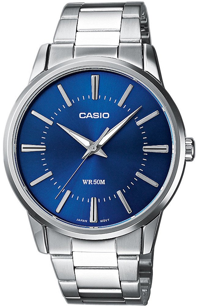 Casio analogové ocel elegantní pánské bateriové - quartz pro běžné použití (30–50 m) 40 mm ocel 50 m bateriové 109 g minerální 21 cm bez osazení Collection kulaté stříbrná modrá s luminiscencí skládací spona 1.8 cm na ruku bez číslic stříbrná ocel pevná ocel 8.1 mm bez chytrých funkcí