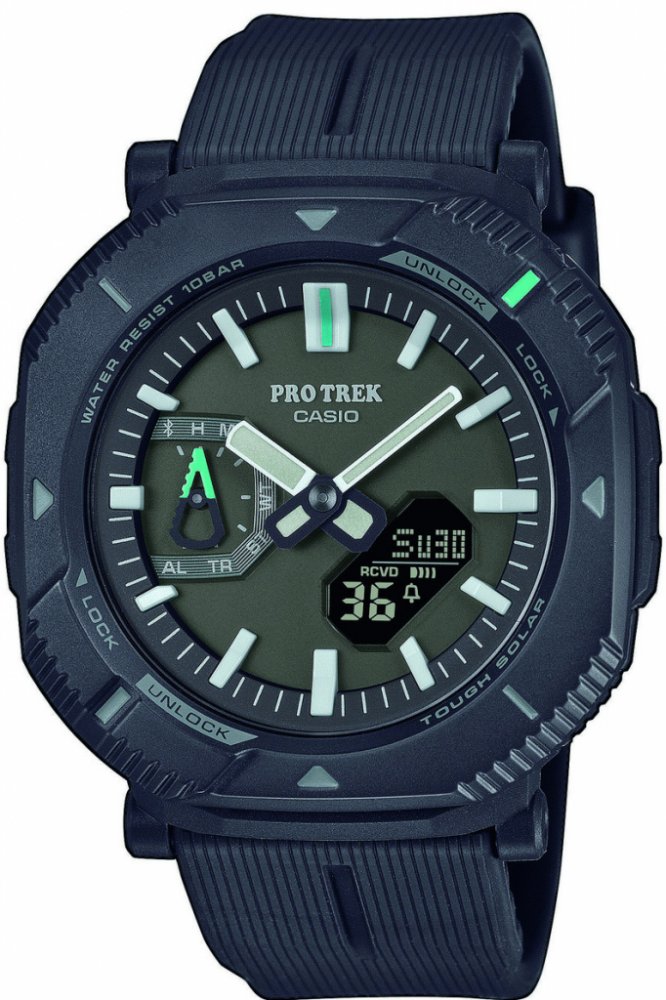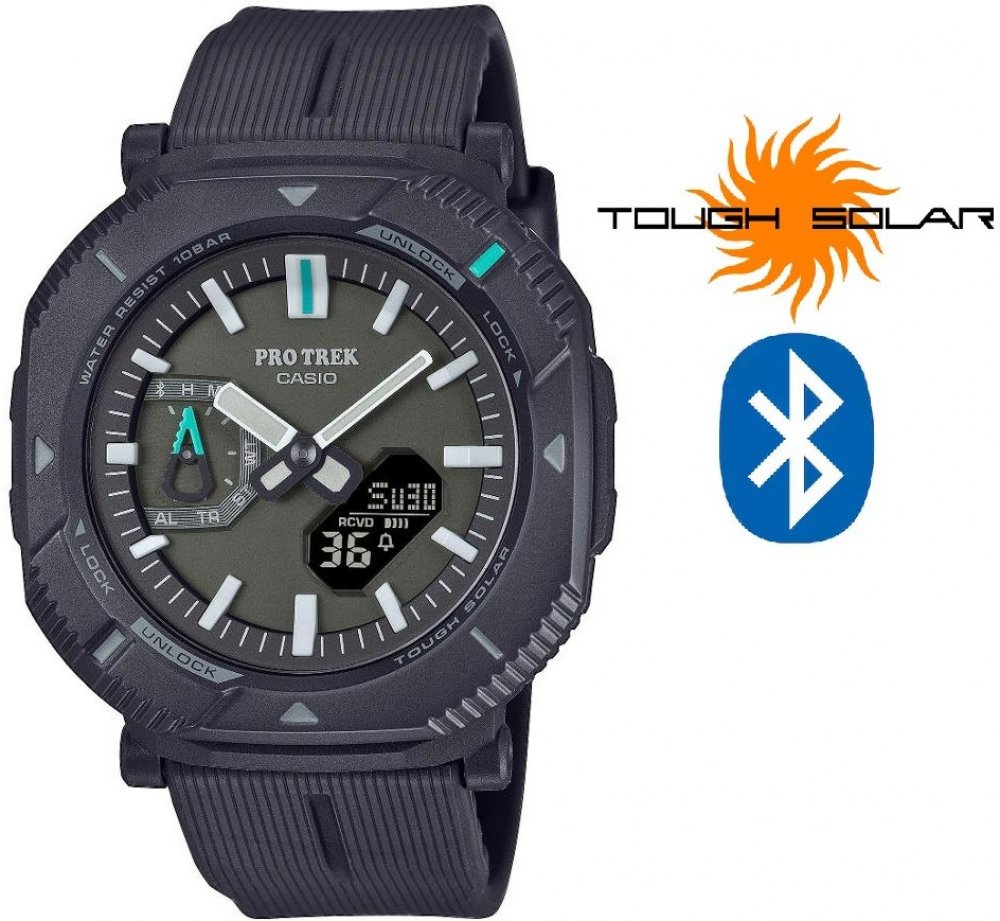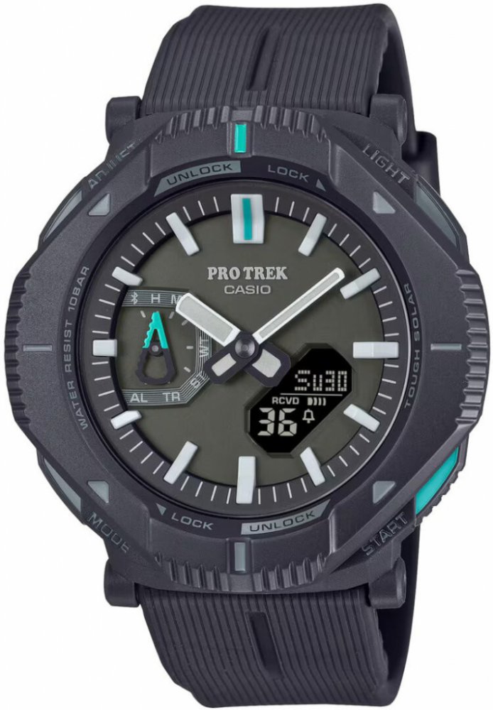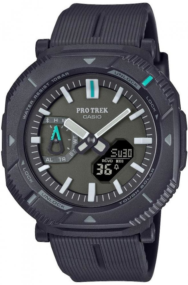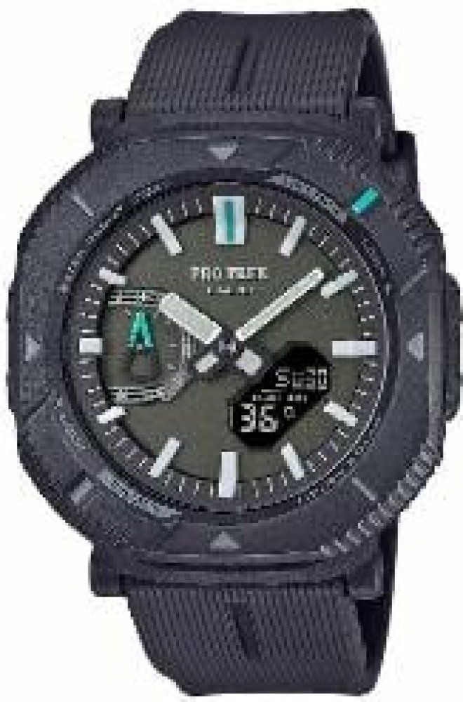 Casio kombinované plast plast 50.3 x 46 x 13.6 mm 100 m solární 44 g minerální sportovní pánské solární Pro Trek kulaté černá černá skládací spona 2.2 cm s LED diodou