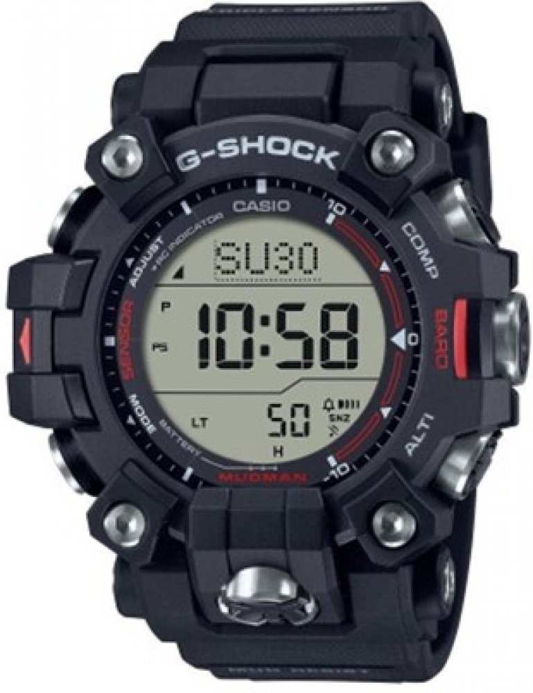 Casio digitální plast sportovní pánské pryskyřice solární minerální Mudman kulaté černá černá s LED diodou na ruku s arabskými číslicemi černá s dočasným svícením (luminiscence/LED) se senzory bez telefonu