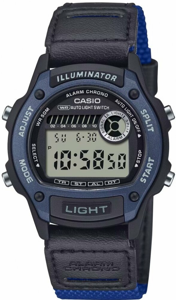 Hodinky Casio W-220HF-2AVEF vám přidají na eleganci a podpoří váš styl. S kvalitním zpracováním z dílny značky Casio se nemusíte obávat, že šlápnete vedle. Garantujeme vám 100% originalitu zboží a bezplatnou výměnu baterie do 6 měsíců. Za produkty v naší nabídce si stojíme. Neváhejte a vyšperkujte váš styl s náramkovými hodinkami Casio W-220HF-2AVEF.Unisex náramkové hodinky Napájení z baterie Strojek 3549 Průměr pouzdra 43,0 mm Pouzdro ve tvaru kruhu Plastové pouzdro Černá barva pouzdra Kombinovaný řemínek kůže-látka Modrá barva řemínku Digitální ciferník Ciferník s arabskými čísly Materiál skla - plast Odolné vůči vodě během sprchování a mytí Datum Stopky Odpočítávací stopky s opakováním Automatické LED osvětlení displeje Budík Druhý čas