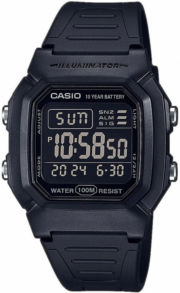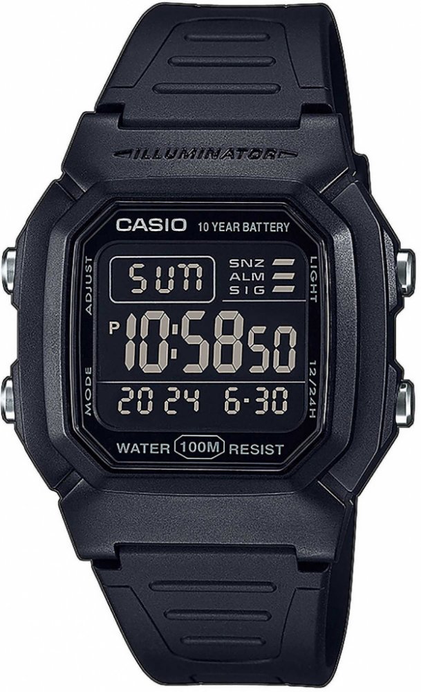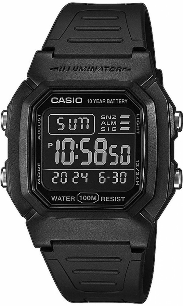 Pánské sportovní digitální hodinky CASIO W-800H-1BVES jsou vyrobeny z plastu. Model nabízí několik výborných funkcí: datum (automatický kalendář), stopky s přesností 1/100 sekundy a maximální dobou měření 24 hodin, budík a LED osvětlení. O napájení se stará baterie s prodlouženou životností.