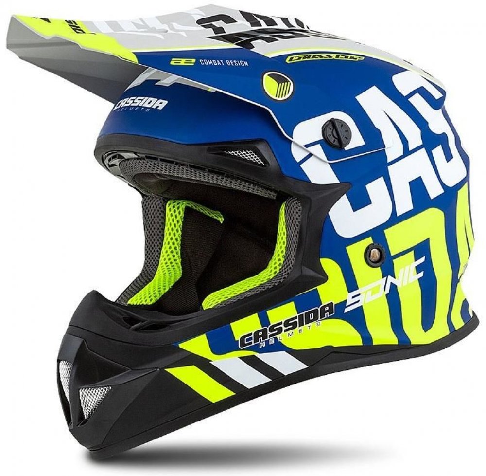 CASSIDA přilba Cross Cup Sonic modrá matná/bílá/žlutá fluo/černá/šedá