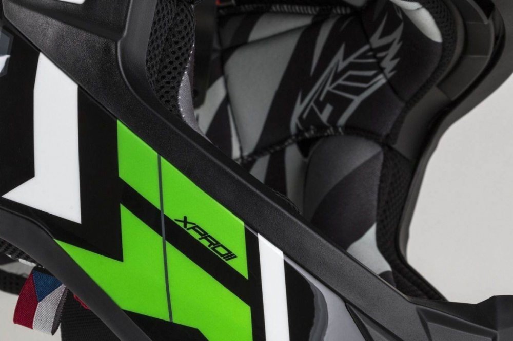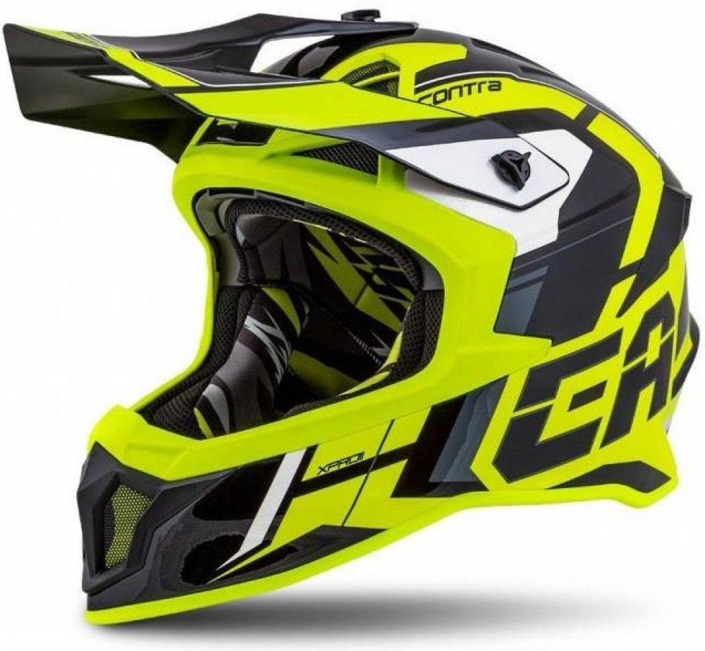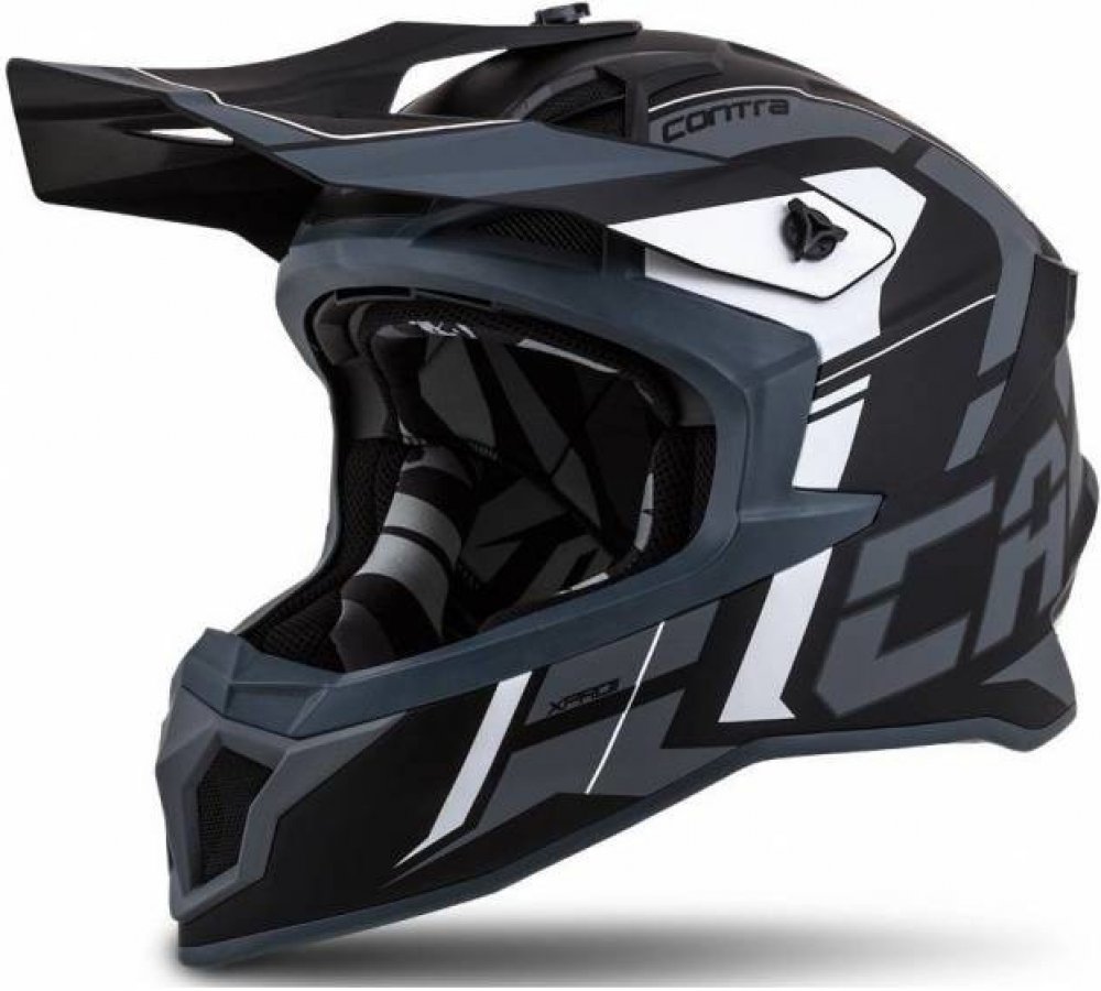 přilba Cross Pro II je nástupce předchozí verze uvedený pro sezonu 2020 v grafické řadě Contra. Skolaminátová skořepina, nastavitelný kšilt s bočními slitinovými a jedním středovým plastovým šroubem pro možnost nastavení polohy a možnost šetrnějšího sklopení kšiltu v případě kontaktu s překážkou. Interier přilby disponuje nově jako první model v nabídce systémem odnímatelných lícnic Cassida Safety...