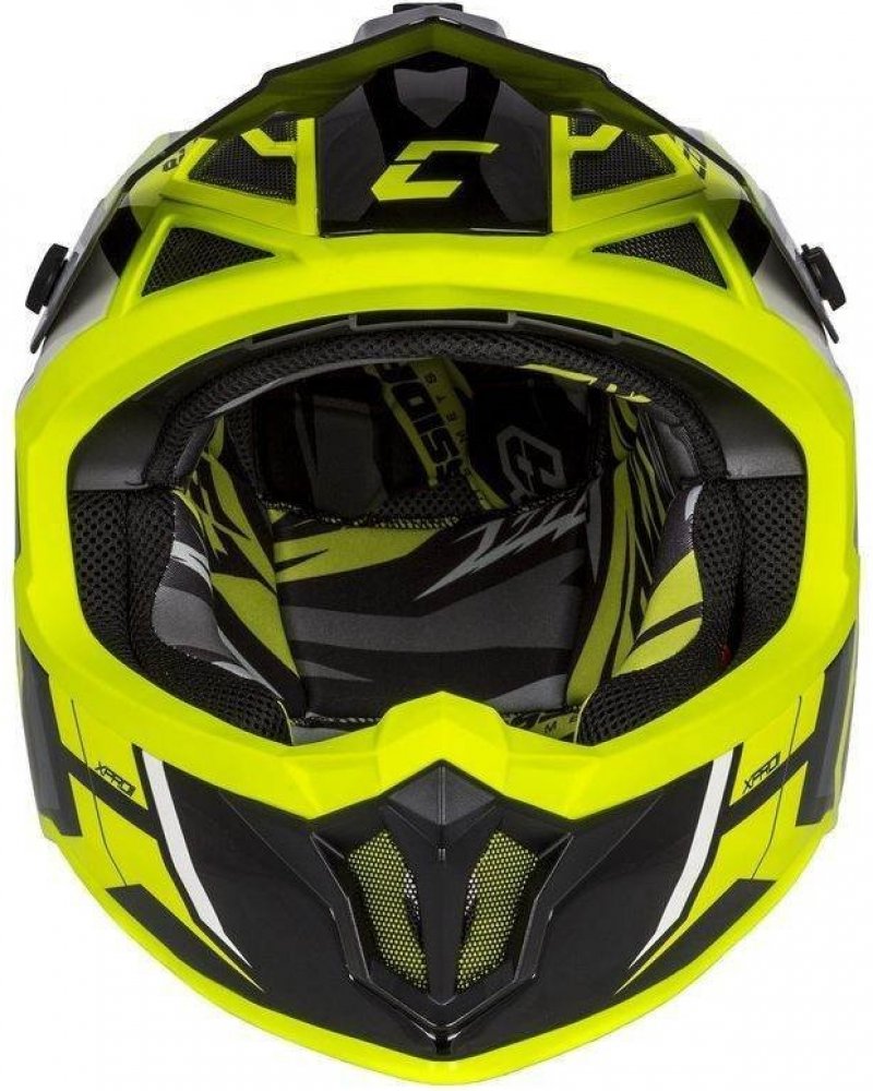 přilba Cross Pro II je nástupce předchozí verze uvedený pro sezonu 2020 v grafické řadě Contra. Skolaminátová skořepina, nastavitelný kšilt s bočními slitinovými a jedním středovým plastovým šroubem pro možnost nastavení polohy a možnost šetrnějšího sklopení kšiltu v případě kontaktu s překážkou. Interier přilby disponuje nově jako první model v nabídce systémem odnímatelných lícnic Cassida Safety Opening System (Cassida SOS) a tištěnou grafikou interieru přilby. Dobře omyvatelný vnitřek přilby a ventilační systém s bradovou ventilací disponující vyměnitelným uhlíkovým filtrem jsou detaily doplňující celek. Konstrukce sklolaminátová skořepina s vlákny spojenými epoxidovým tmelem, vyztužená kompozitními vlákny v mechanicky namáhaných oblastech jako je uložení řemínku dostupné ve 2 velikostech skořepiny (XS - M a L - 2XL) vnitřní jádro z EPS polysterenu Bezpečnost snížený profil přilby v bočních partiích zajišťuje lepší volnost nátáčení hlavy do stran spodní část přilby je tvarově přizpůsobena pro fungování s protektory krční páteře homologace ECE 22.05.P Hlavní přednosti produktu ventilační systém s bradovou ventilací osazenou vyměnitelným uhlíkovým filtrem nastavitelný kšilt s bočními slitinovými a středovým plastovým šroubem pro možnost šetrnějšího sklopení kšiltu v případě kontaktu s překážkou interier s tištěnou grafikou navazující na funkční ventilační soustavu přilby plně odnímatelná výstelka se síťovanými panely umístěnými na místech, kde je očekávána větší absorbce potu zapínání bezpečnostního řemínku pomocí dvojitých DD kroužků velký průzor kompatibilní i s většími rámy motokrosových brýlí dostupných na trhu textilní vak na přilbu a extra pěnový pytel jako ochrana proti poškrábání dostupné jako součást balíčku s produktem hmotnost přilby ±1150g ±50g (malá skořepina, velikosti XS-M) a ±1200g ±50g (velká skořepina, velikosti L-2XL) Orientační tabulka velikostí přileb Cassida velikost XS S M L XL XXL obvod hlavy v cm 53 - 54 55 - 56 57 - 58 59 - 60 61 - 62 63 - 64