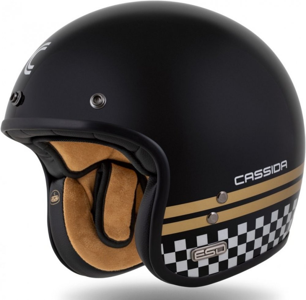 CASSIDA ESO je model otevřené neo retro přilby se sklolaminátovou skořepinou, která disponuje standardy prémiových přileb této kategorie a splňuje bezpečnostní a certifikační standardy současných přileb.