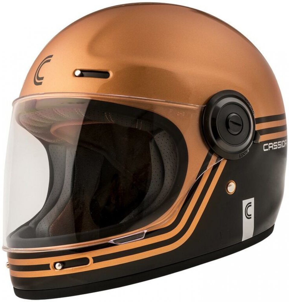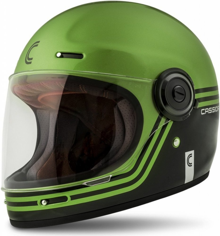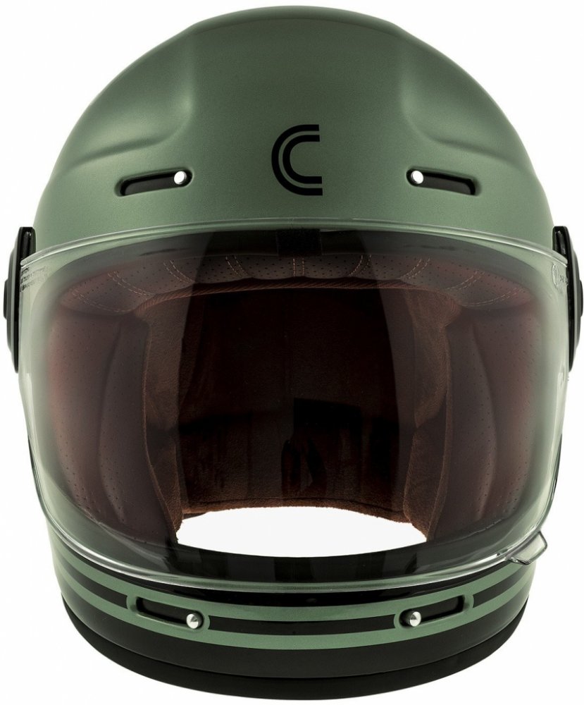 Přilba Fibre je integrální přilba se sklolaminátovou skořepinou, bezpečnostními standardy moderních přileb a vzhledem cíleným na uživatele veteránů nebo kategorie neo retro a moderních klasických motocyklů.